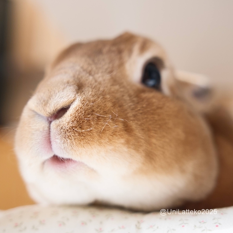 6歳のうに。相変わらずのベビーフェイスで、今日もかわいさ更新中☺️ #うにラテ成長記録 #ミニレッキス #うさぎのいる暮らし pic.x.com/3P0joysRfC