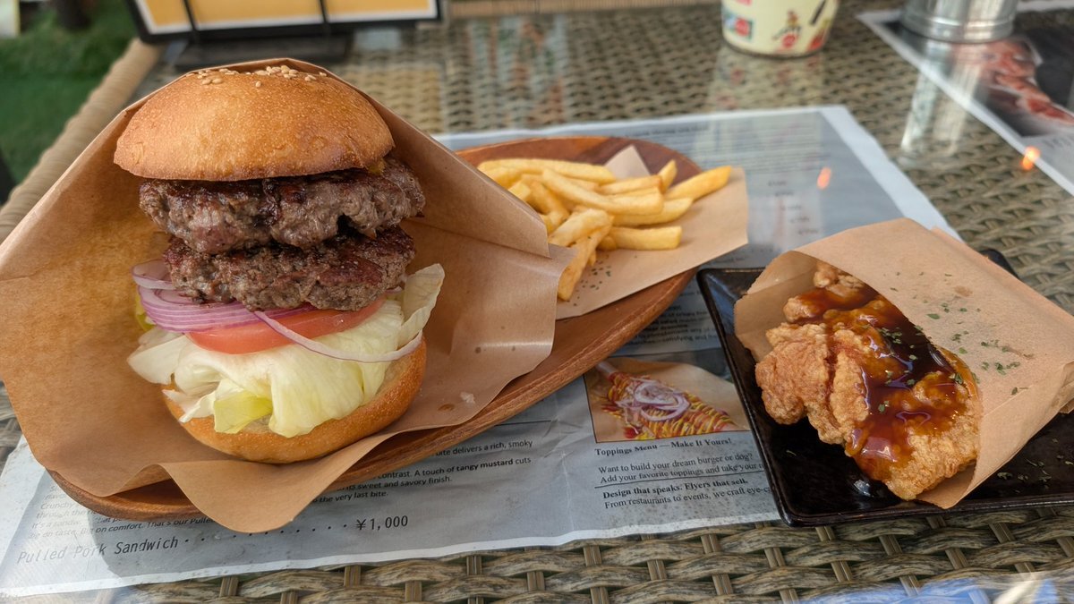 #本日の飯テロ活動 #本日のうま竹チャレンジ #市川市最強グルメバーガー #路地裏ダイナーOD #千葉県市川市鬼高 #うまタッチャン #うまともちゃん #うま竹 クラシックバーガー パティ1枚 追加 ポテト フライドチキン にんにく醤油 😃 そびえ立つ 肉塊! pic.x.com/8j3GqH5deX