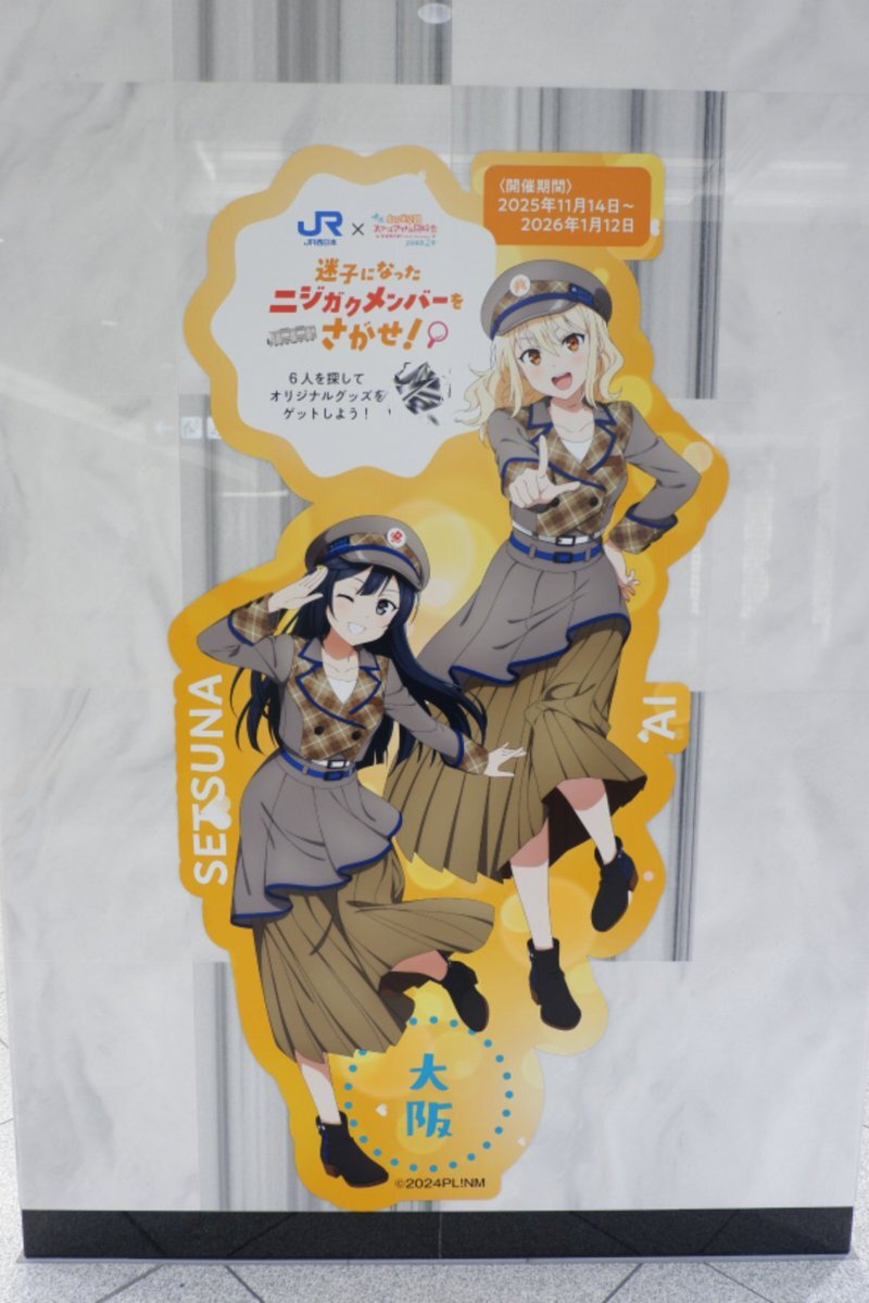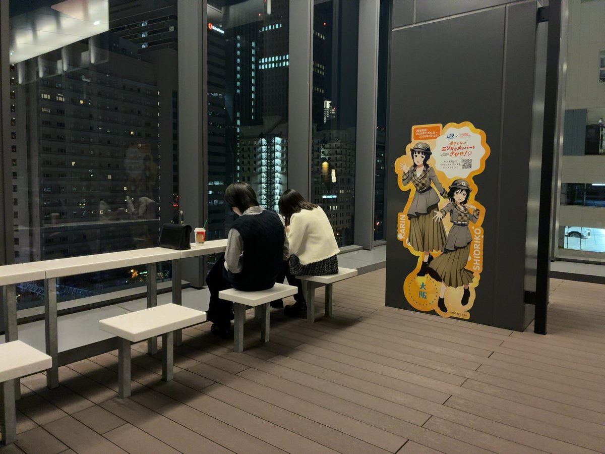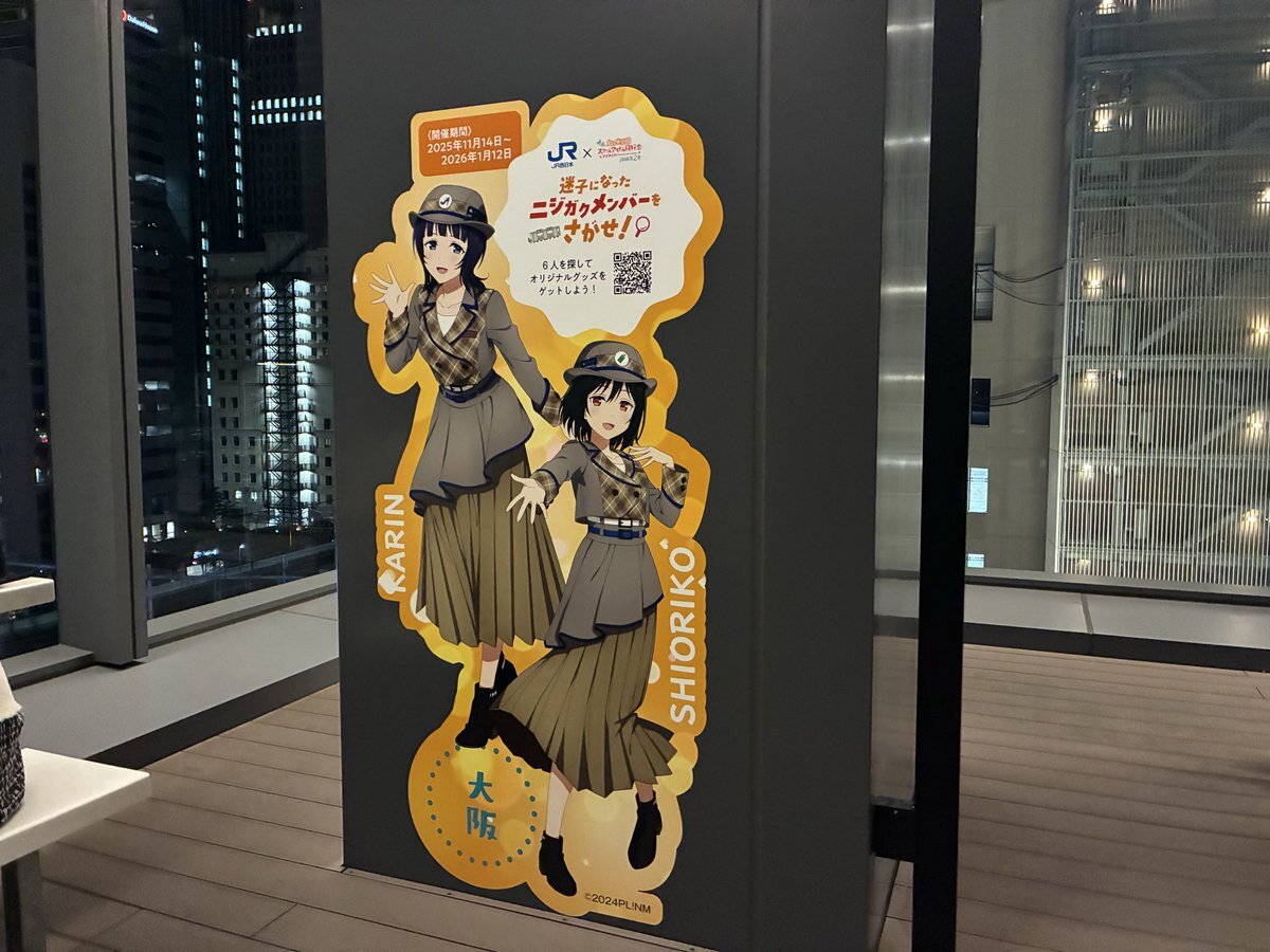 イノゲード大阪ってどこやねんと思いながら辿り着いた、 スカイラウンジ。 何故か!果林さんと栞子さんがお出迎え。 いや、ここは、西口の所にある愛さんせっつーを貼るべきなのでは。 “ほんの少しの憂木(せつ菜)”の名シーンの場所なのに #えいがさき大阪ロケ地にいってきた pic.x.com/O2CyxsnCpN