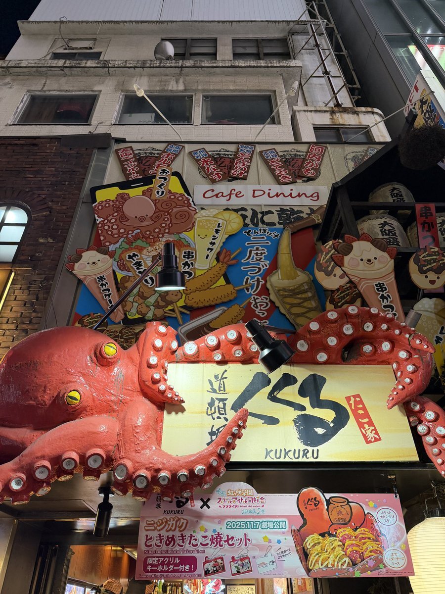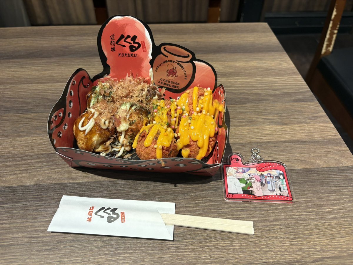 道頓堀のくくるさんでコラボたこ焼き食べた🐙 8個中4個は生地が海老風味なのとチェダーチーズがかかってて美味しかった😋 特典ノベルティも貰えたよ👍 えいがさきでは熱そうにしながら食べる愛ちゃんが可愛すぎてめちゃくちゃ好き☺️ #えいがさき大阪ロケ地にいってきた pic.x.com/EqPOa6ICwj