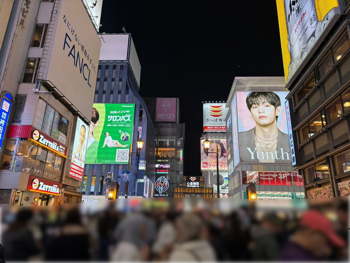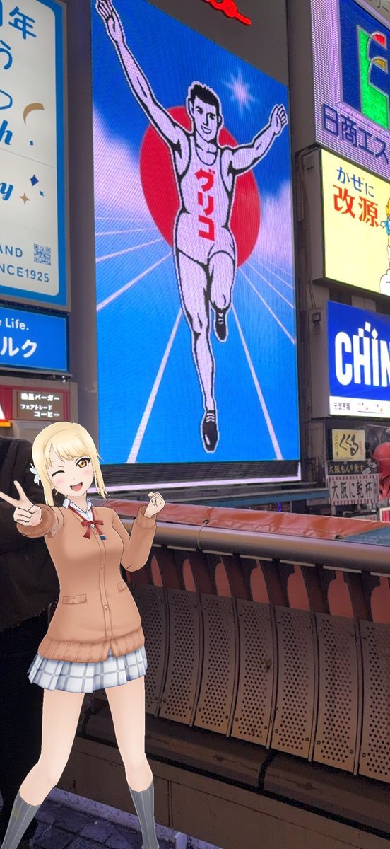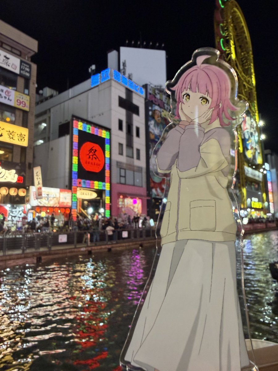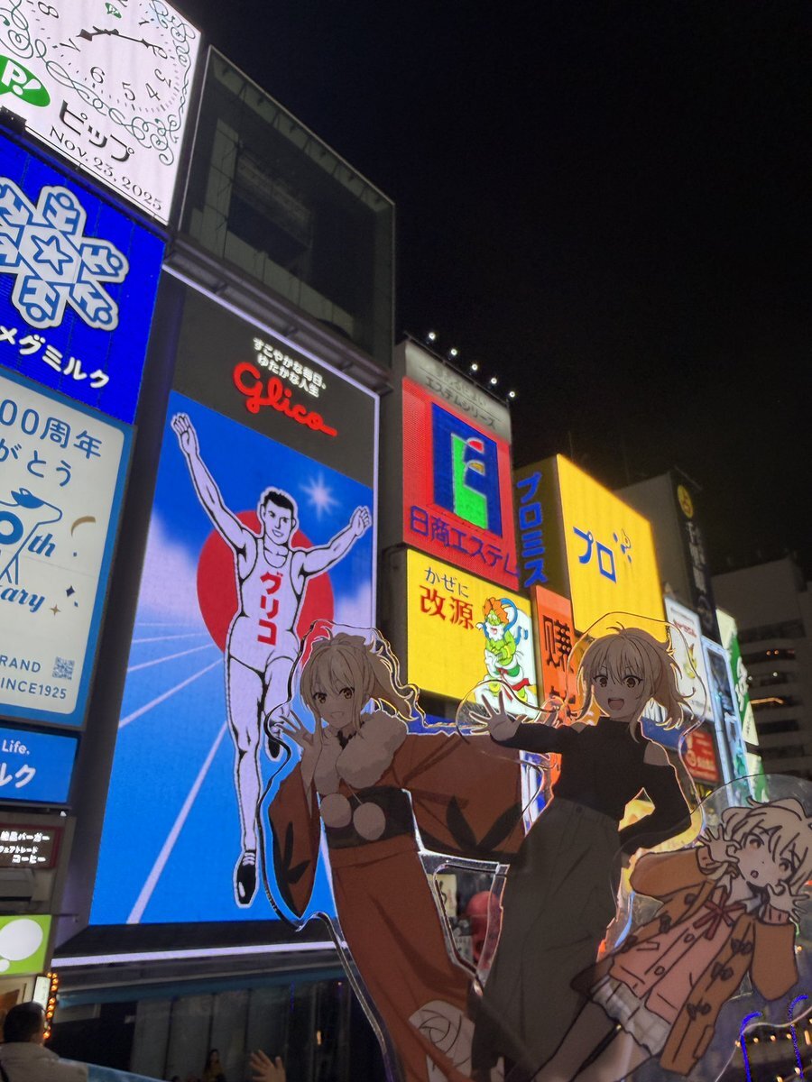 ありが道頓堀! 道頓堀といえば愛ちゃん!!🤝 終盤のシーンでモニター越しの愛ちゃんがここに映し出されてたよね あと近くにCheer Modeの無双ビルもあったよ📶 映画では無敵ビル表記だったけど、実際は無双ビル表記なんだね〜 #えいがさき大阪ロケ地にいってきた pic.x.com/qSmaxgbWDU