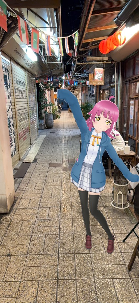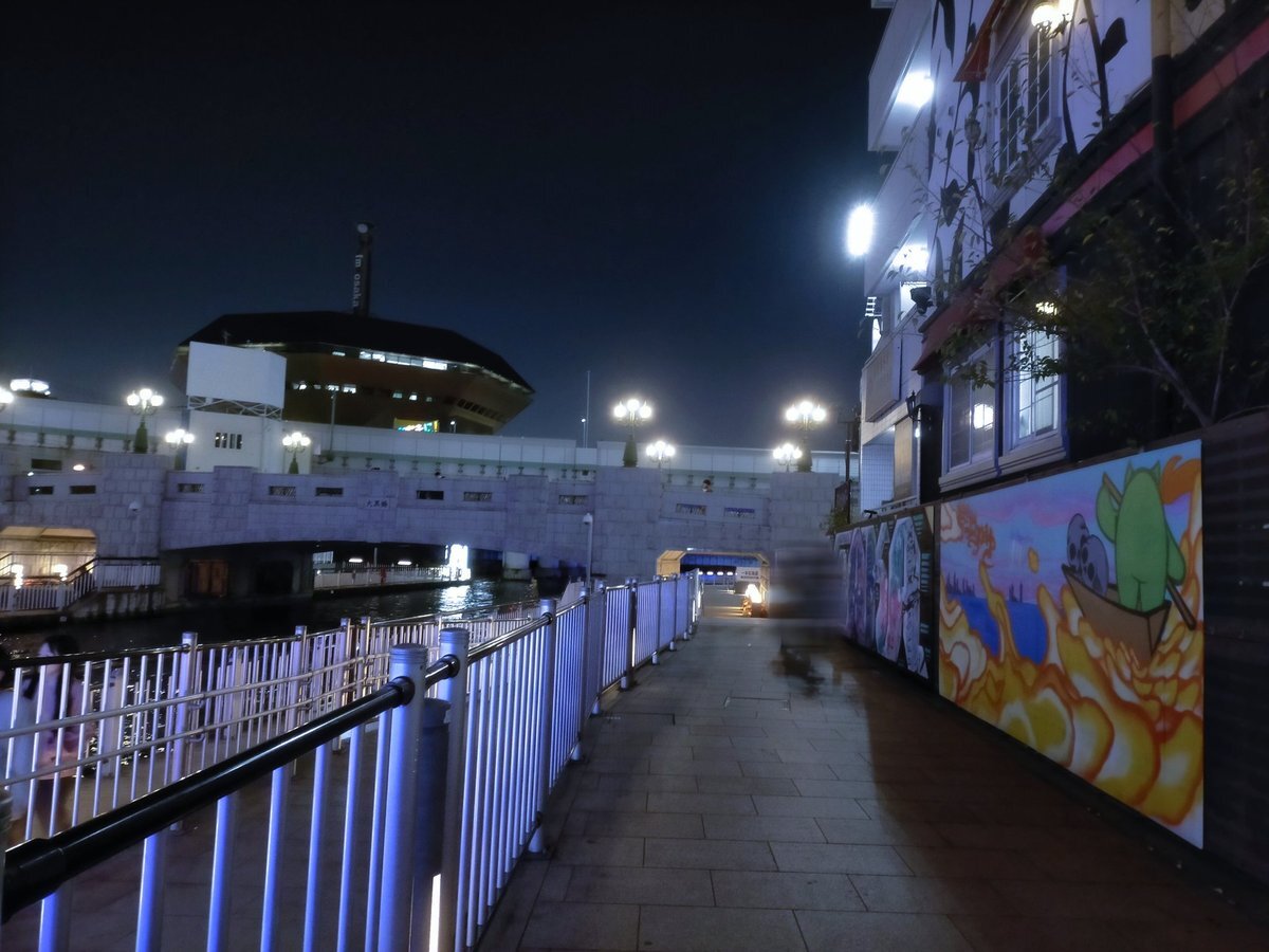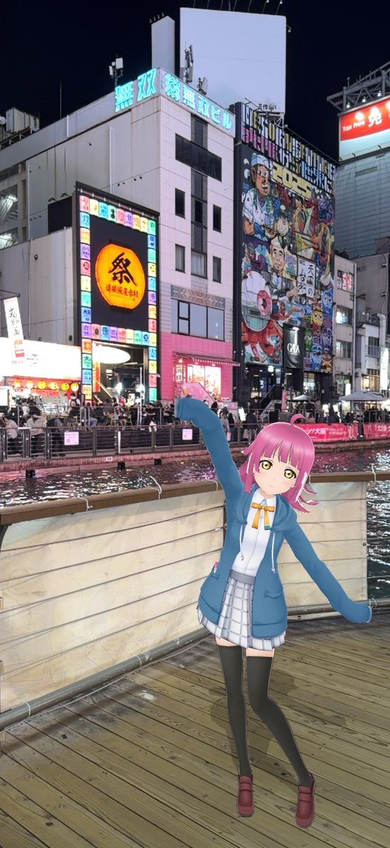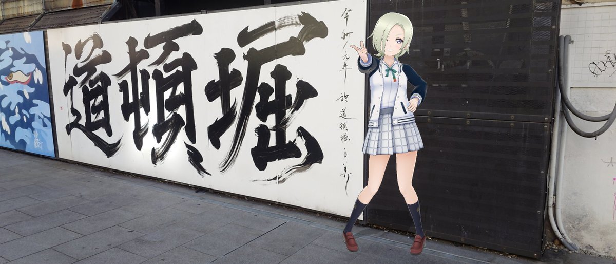 璃奈の行方を探す途中でA.L.A.Nの配信見てたらアプリが落ちたのを見て不安がるミアのいた場所 大黒橋と新戎橋の間にある道頓堀アートストリート。作中のアートは無いっぽい 雨が降り矢印だらけのアートで今の気持ちがどこにあるのか分からないミアを表現した場面でした。よし行こ #ネタバレえいがさき