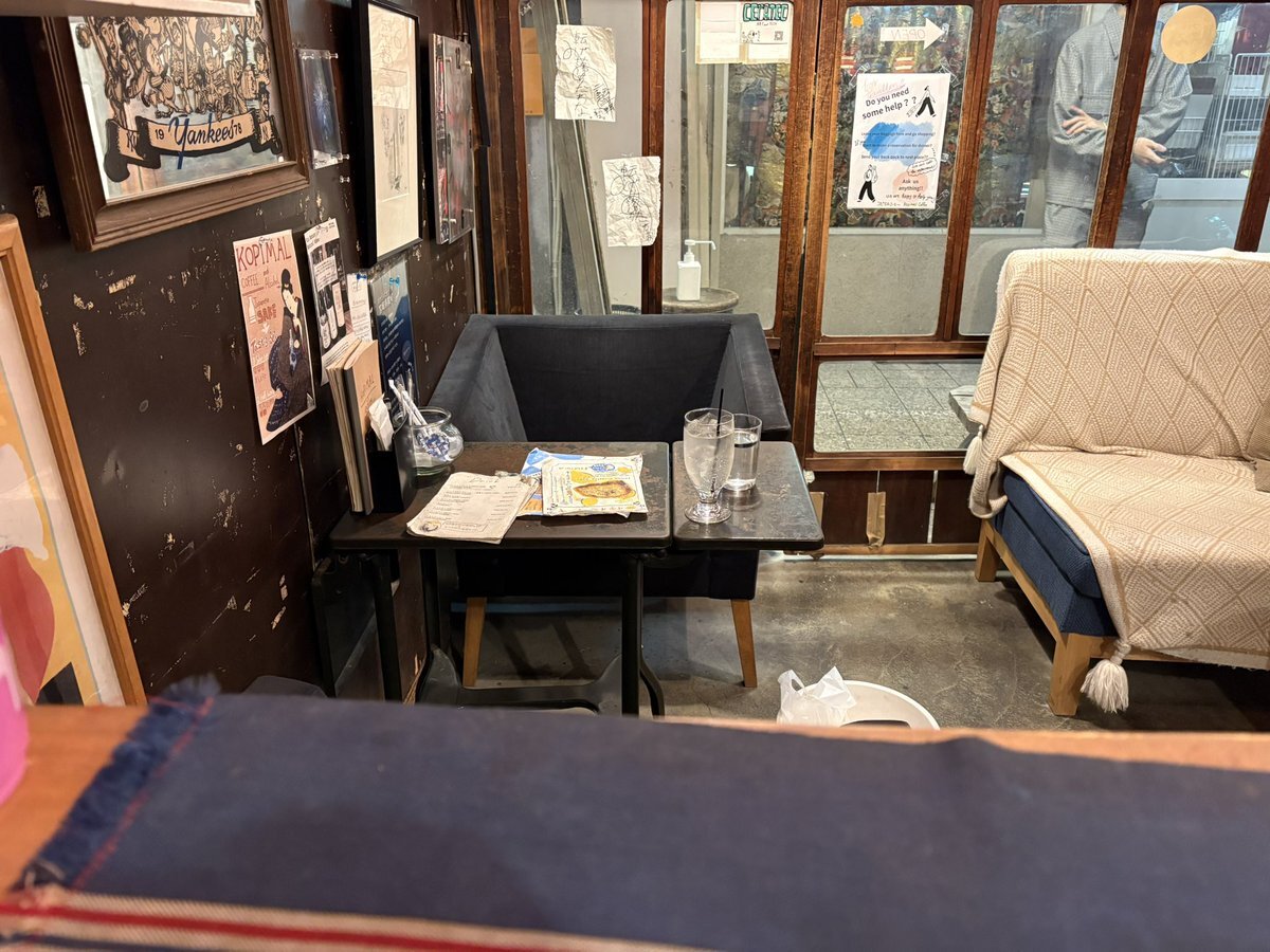 コピマルコーヒーさん 団扇を持って悩む副会長が大荷物を持った璃奈を見かけるシーン 素敵な内装でコーヒーもとても美味しく、店員さんも優しくて幸せな時間でした #えいがさき大阪ロケ地にいってきた pic.x.com/G0V7vdOt2W