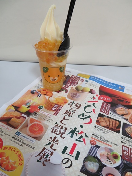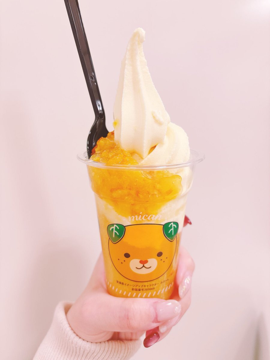 11月15日🍊#えひめ・松山の物産と観光展 藤崎百貨店で3回目の開催。ゼリーの入った伊予柑ソフトで #みきゃん を待つことに。マーマレード苦手な私でも美味しく頂けました。お尻が緑のみきゃんは初見な気がする🤔ゼッケンみたいなのも見えたから運動系かな。 #みきゃんパーク梅津寺 #愛媛県 #藤崎 pic.x.com/mm5b9Kq0vt x.com/fujisaki_dept/…