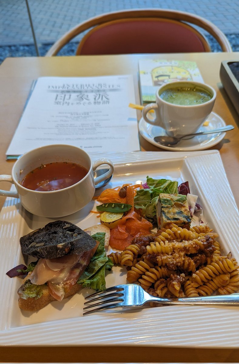 ル・コルビュジエプレートと抹茶ラテ 上野駅周辺の描写や感想が的確で没入感を味わえました、肌寒くないところに季節の移り変わりを実感しました #濱浦盟子 #おいしいはやさしい pic.x.com/rkesPLJZ2q