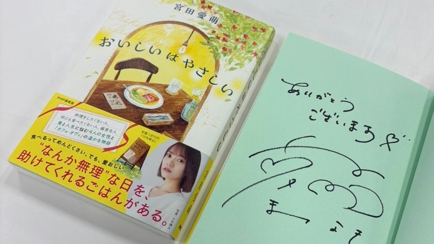 いえ〜い‼️ まだおいしいはやさしいのサイン本持ってないから超嬉しい☺️ 作った玉子焼き褒められた上に、愛萌さんのサイン本貰えるとかさぁ 最高の人生すぎる❣️ ありがとうございます‼️ 大切にします‼️🙇 #おいしいはやさしい #宮田愛萌 x.com/phpinstitute_p…