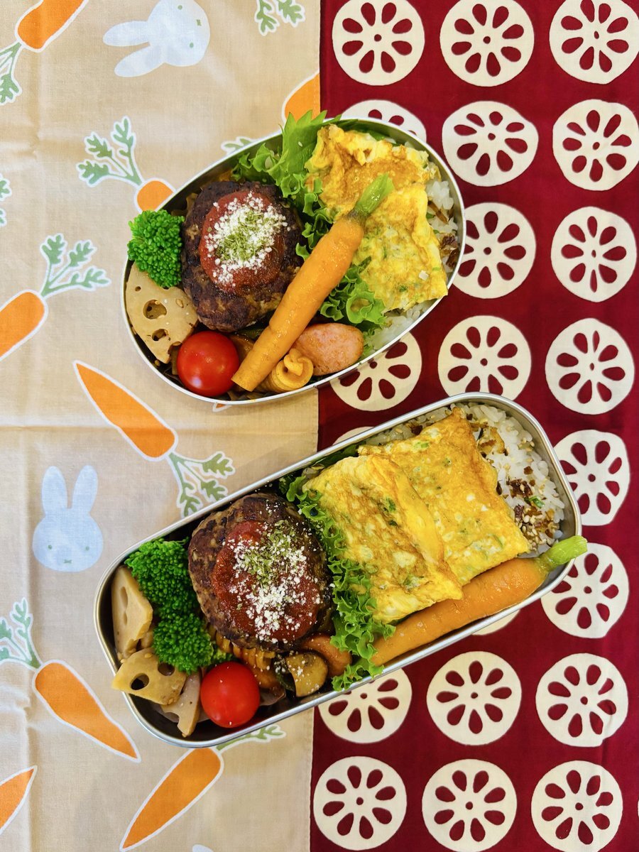 2025/10/28 今日のJCJK弁当🎀 ・ハンバーグ ・ナポリタン ・しらす、ねぎ、チーズの卵焼き ・蓮根のきんぴら ・人参のグラッセ ・🥦🍅 おいしい風呂敷『にんじん』『れんこん』 #お弁当 #お弁当日記 #お弁当作り楽しもう部 #おいしい風呂敷 pic.x.com/tkheGyWyRG