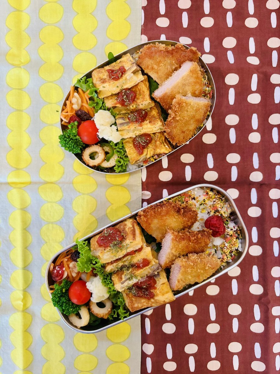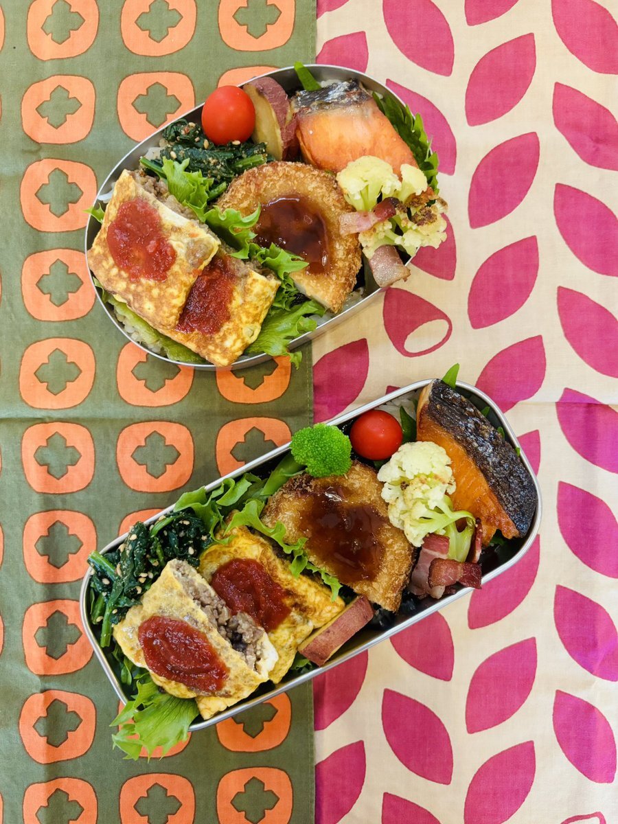 2025/11/10 今日のJCJK弁当🎀 ・ヒレカツ ・マッシュルームと玉葱のオムレツ ・キャロットラペ ・ちくわとピーマンの甘辛炒め ・🥦🍅カリフラワー おいしい風呂敷『ぎんなん』『しめじ』 #お弁当 #お弁当日記 #お弁当作り楽しもう部 #おいしい風呂敷 pic.x.com/vuWYY6V7r0