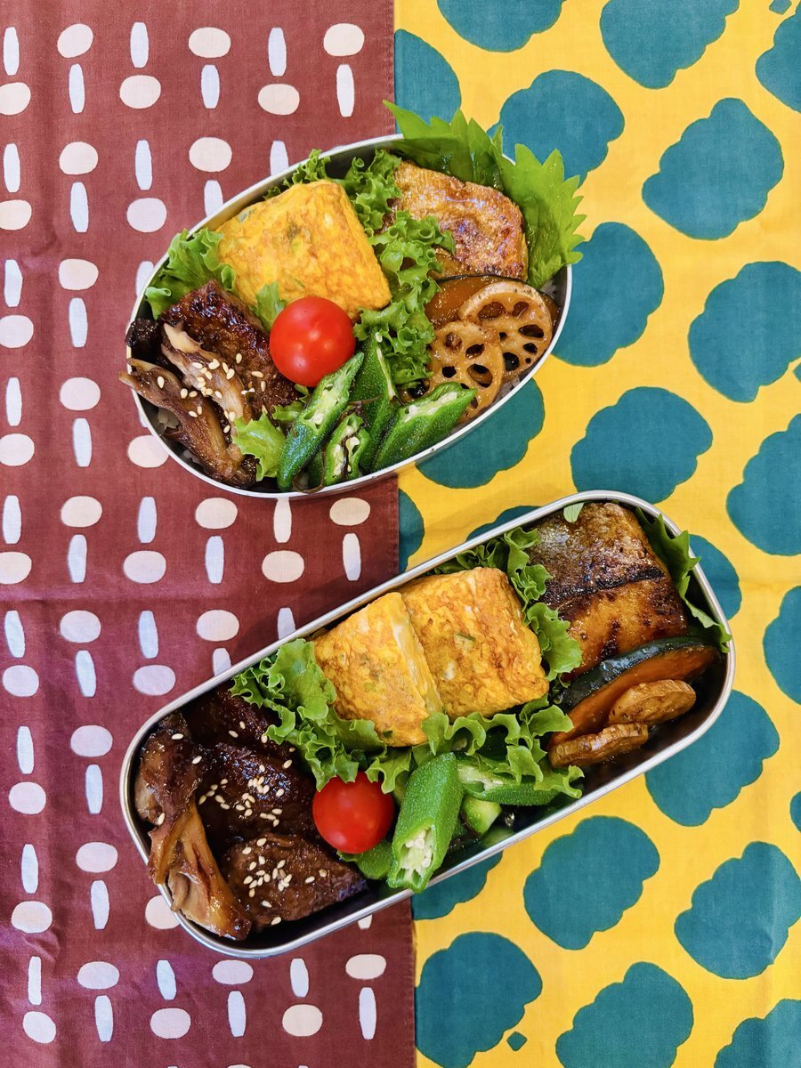 2025/10/23 今日のJCJK弁当🎀 ・鰤の照り焼き、南瓜、蓮根 ・焼肉、舞茸 ・しらすと葱のチーズの卵焼き ・オクラの塩昆布和え ・🍅 おいしい風呂敷『しめじ』『かぼちゃ』 #お弁当 #お弁当日記 #お弁当作り楽しもう部 #おいしい風呂敷 pic.x.com/st5EOLVuTR