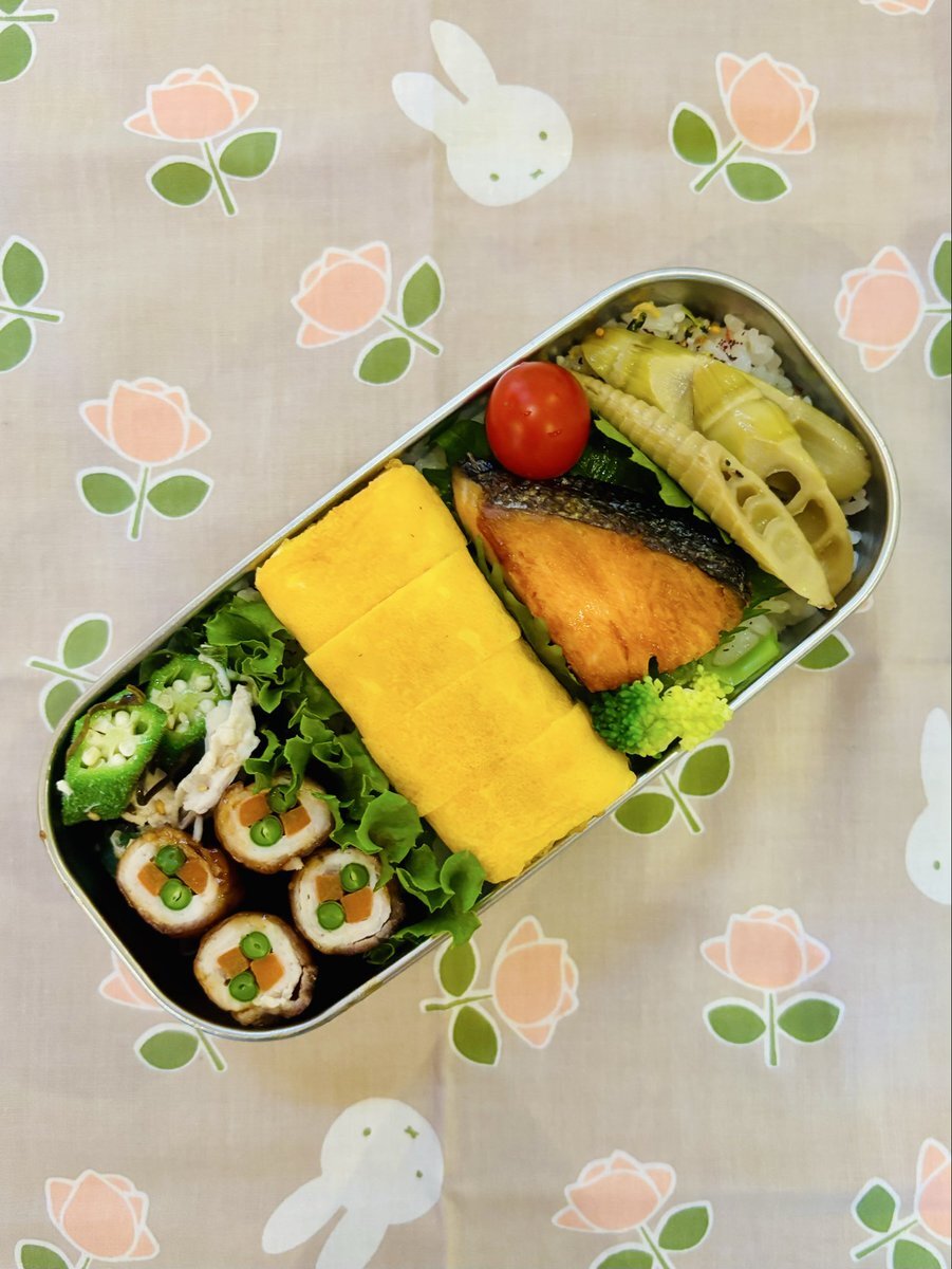 2025/10/19 今日のJK弁当🎀 ・いんげんと人参の肉巻き ・焼き鮭 ・オクラとササミの塩昆布和え ・卵焼き ・四方竹の煮物 ・🥦🍅 おいしい風呂敷『ばら🌹』 #お弁当 #お弁当日記 #お弁当作り楽しもう部 #おいしい風呂敷 pic.x.com/jpR6dfgKAF