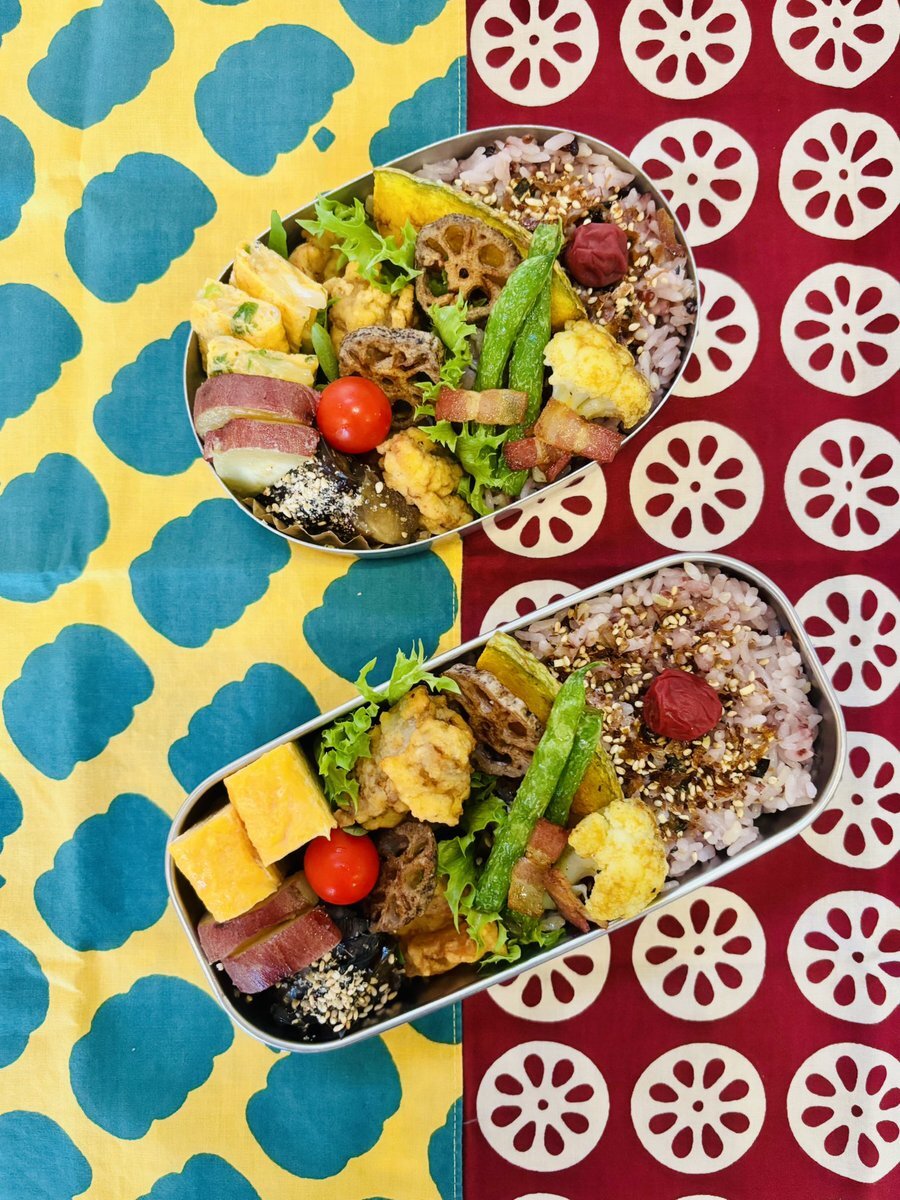 2025/11/07 今日のJCJK弁当🎀 ・梅酢から揚げ ・卵焼き(甘、しらす葱チーズ) ・茄子の煮浸し ・カリフラワーのカレーマヨ炒め ・さつまいもバター ・南瓜、蓮根、いんげんの素揚げ ・🍅 おいしい風呂敷『かぼちゃ』『れんこん』 #お弁当 #お弁当日記 #お弁当作り楽しもう部 #おいしい風呂敷 pic.x.com/EpGbmfSICu