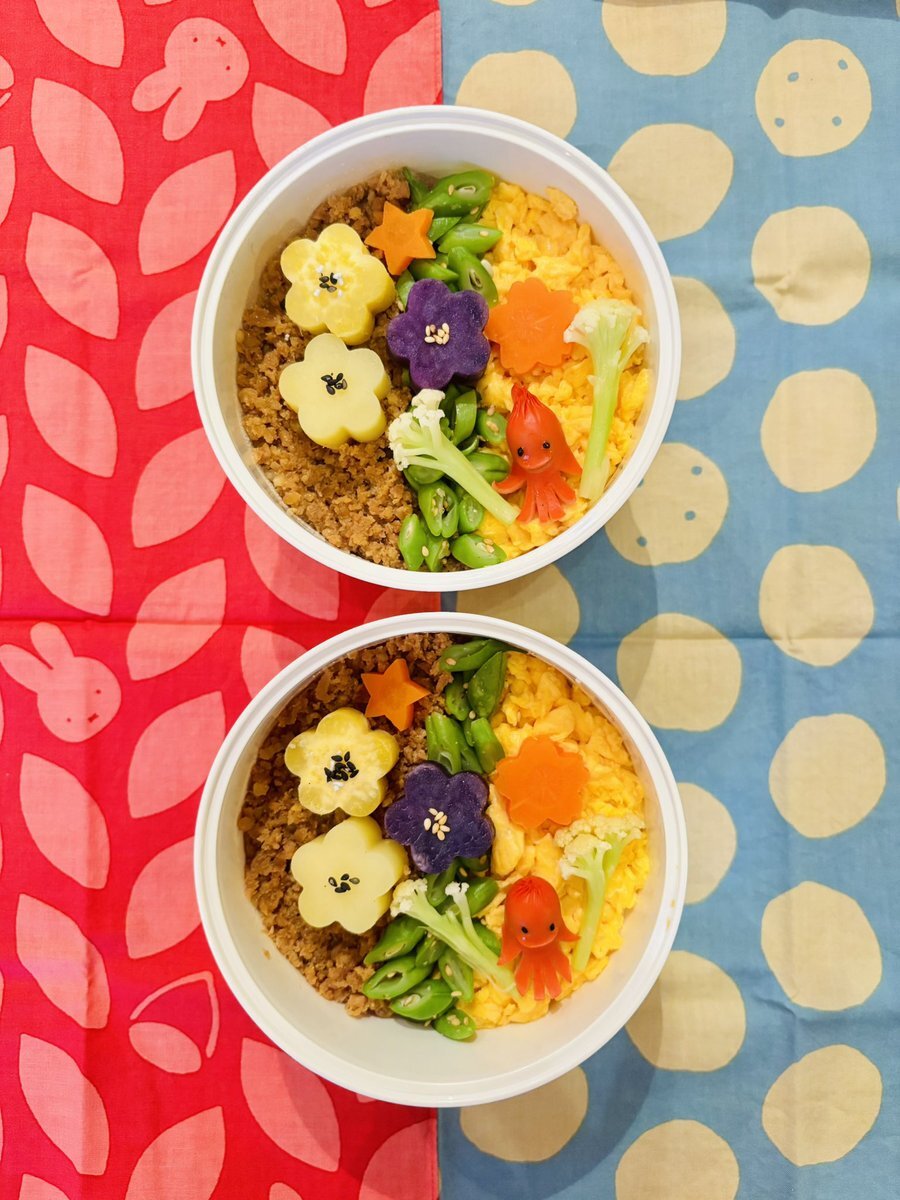 2025/11/13 今日のJCJK弁当🎀 ・三色丼(鶏そぼろ、いんげん、炒り卵) ・ソー星人 ・蒸し野菜(カリフローレ、サツマイモ、じゃがいも、にんじん) おいしい風呂敷『さつまいも』『じゃがいも』 #お弁当 #お弁当日記 #お弁当作り楽しもう部 #おいしい風呂敷 ソー星人、両手に花 ✨\( ˆoˆ )/✨ pic.x.com/a9y14qCKBu