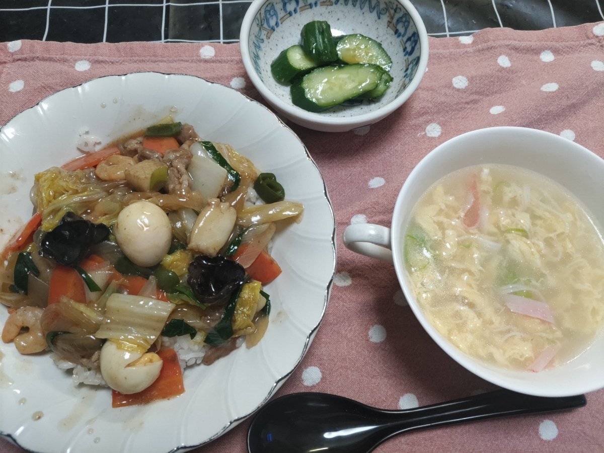 〜昨日の晩ご飯〜 ☆もち麦ご飯 ☆蟹(かま)玉 甘酢あんかけ ☆小松菜 筍 エリンギの牡蠣油炒め ☆煮物(2日目 ☆揚げ餃子 ☆中華風コーンスープ 夕べの #おうちごはん は #おうち中華 でした𓎩𐩗 miil.me/p/khp1c pic.x.com/GUUXOA312z