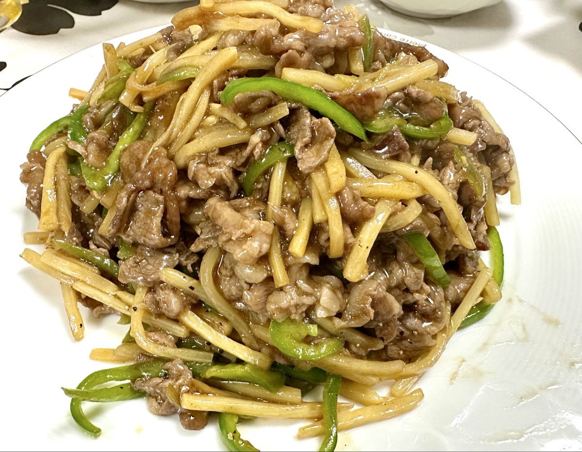 皆さん、こんばんは! 今日の夕飯も中華にしました✨ 「肉入ピーマンともやし炒」です。 昨日のもやしの残りとくたびれたピーマンとバラ肉で作りました😉 #おうちご飯 #おうち中華 pic.x.com/MbyBFnutyN