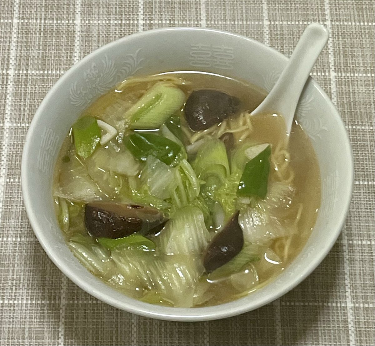 本日の夕食は中華です! チョット高級な「野菜タンメン」です✨ 麺は「ラ王」の袋麺の麺だけ使用 ニンニクだけラードで軽く炒め スープ(顆粒のガラスープ)を入れて白菜、ピーマン、干し椎茸、長ネギ 塩味で醤油で香りと色付けごま油で仕上げます😊 #おうちご飯 #おうち中華 pic.x.com/sbyVgM9W2b