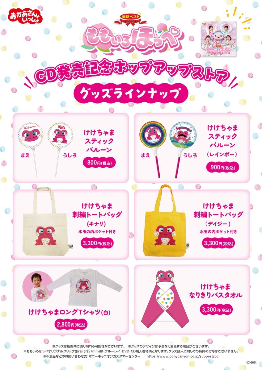 #おかあさんといっしょ】 『最新ベスト ももいろほっぺ』 発売記念POP UPストア開催決定! 📅期間:10/21(火)〜11/3(月) また、対象のCD・映像作品をご購入で『ももいろほっぺオリジナルクリップ缶バッジ』をプレゼント! グッズラインナップは添付の画像をチェック! mama.ponycanyon.co.jp/uncategorized/… pic.x.com/Kwb8uhTg80