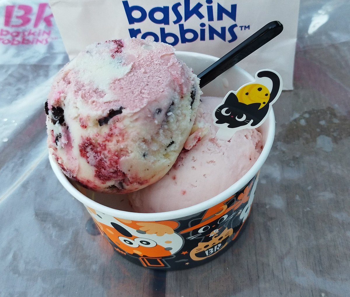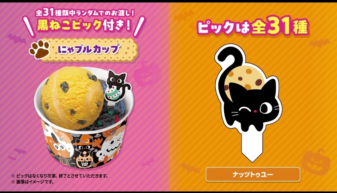 #はっぴ~にゃろうぃ~ん🐈⬛🎃 にゃブルカップを買って来ました🐈⬛🎃黒ねこピックはナッツトゥユーでした🐈⬛🍨これはニャンとも可愛いニャン🐈⬛🥰 #おかしにゃおかしにゃにゃろうぃ~ん #サーティワン x.com/BR31_Icecream/… pic.x.com/ojO2MBKNFJ