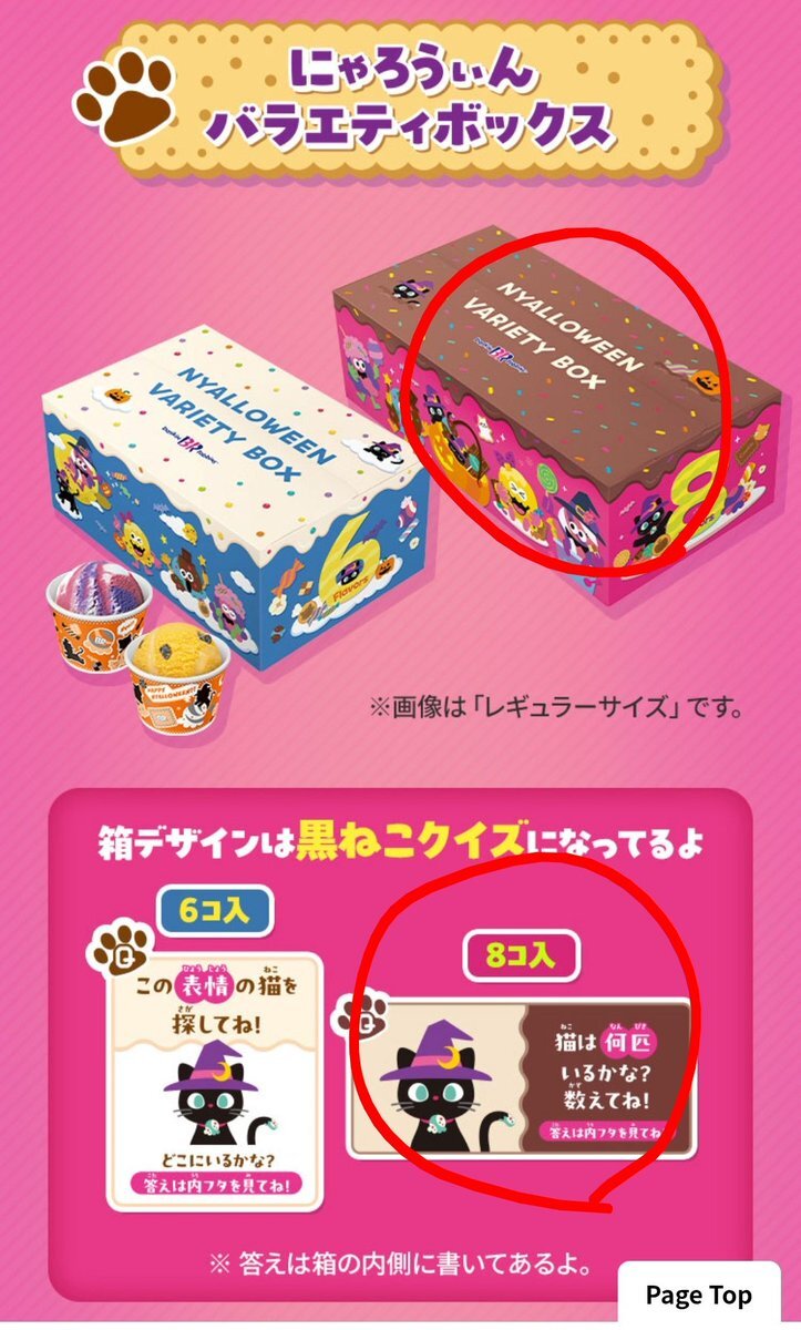 #はっぴ~にゃろうぃ~ん🐈⬛🎃 にゃろうぃんバラエティボックス 8個入りを買って来ました🐈⬛🎃箱可愛い🥰黒ねこ🐈⬛ちゃん5匹見つけたニャ😻 #おかしにゃおかしにゃにゃろうぃ~ん #サーティワン pic.x.com/RJHbVOMsoH