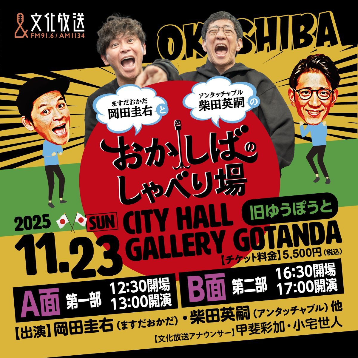 #文化放送 #おかしば です☀️ ついに来週開催🎪 『おかしばのしゃべり場』 bunkajoqr.zaiko.io/e/okashi251123… やることが決まっていないと言ってますが、流石に決まっています😎 楽しませる気満々です!来て損はさせません! 配信はありませんので、是非会場でお待ちしております。 【A面】13時開演