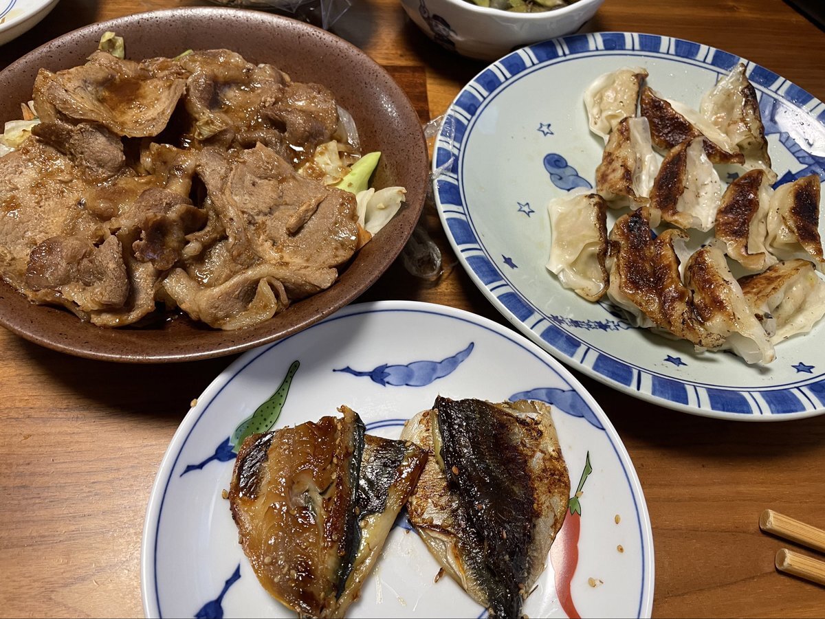 豚肉の生姜焼き、鯵味醂干し、餃子。こんなおかずやったらビールと米なんぼあっても足れへん! #おとうさんの手料理 #おとうさんの晩ご飯 #家庭料理 #おうちごはん #豚肉の生姜焼き #鯵味醂干し #ギョウザ pic.x.com/z1sOzC0d6E