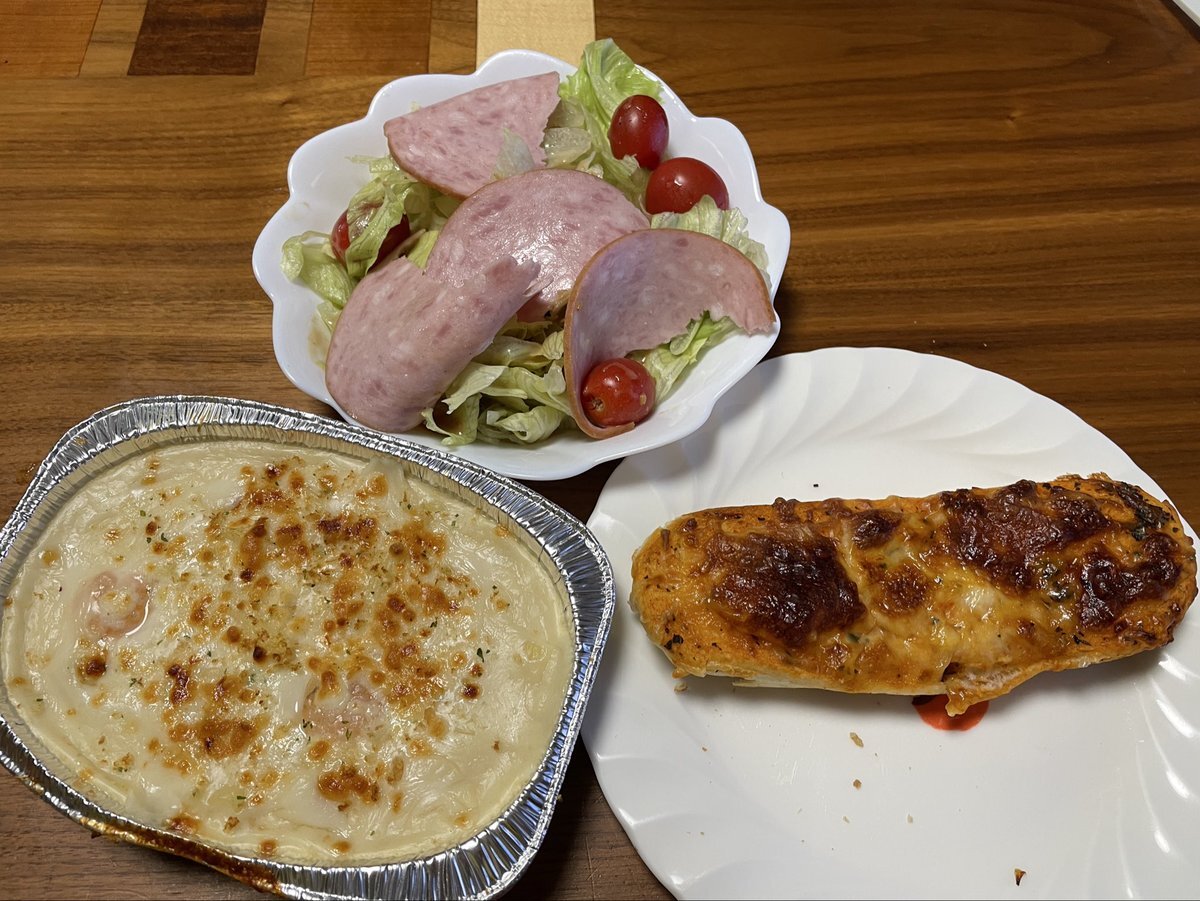 ボッチの晩ご飯は思い切り手抜きで😆海老グラタン、フランスパンのピザ、シャウスライスのサラダ 白ワインが似合いそうなメニュー #おとうさんの手料理 #おとうさんの手抜き料理 #おとうさんの晩ご飯 #家庭料理 #おうちごはん #海老グラタン #シャウスライス #野菜サラダ pic.x.com/f0Dp7ClwHC