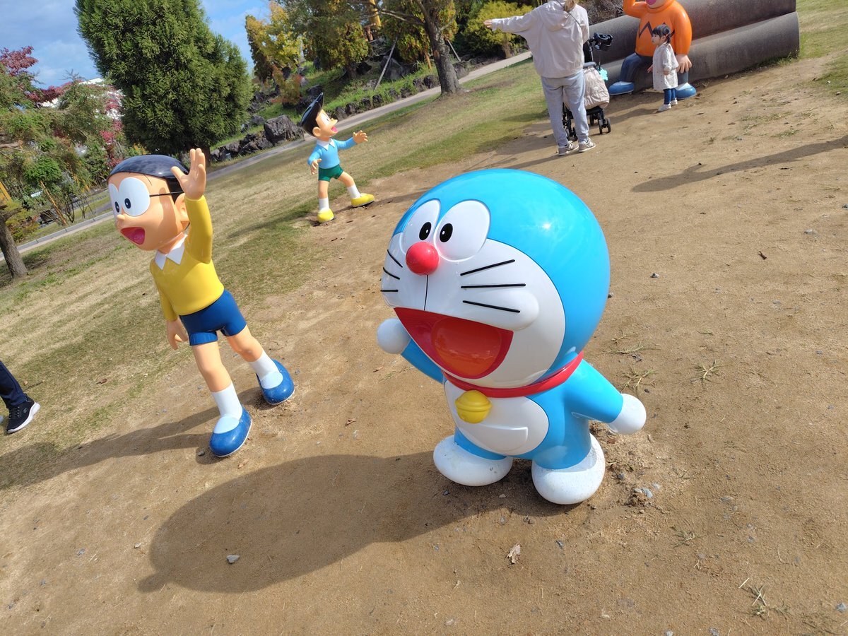 #水ひな #おとぎの森公園 のドラえもん達、塗り直しされてました! 天気がいいから、お子さん連れのお散歩がはかどってますね。 pic.x.com/W6oiQ1W9ba
