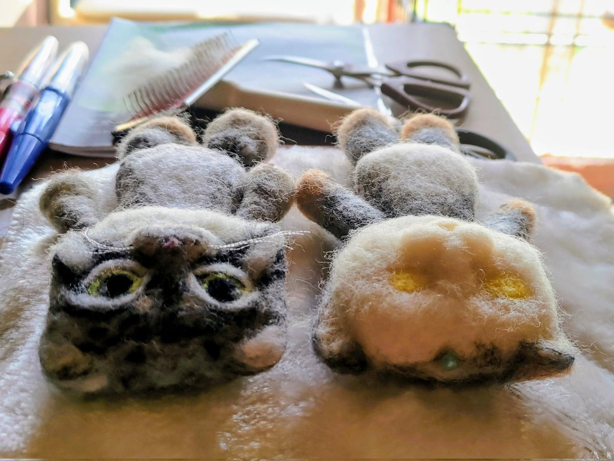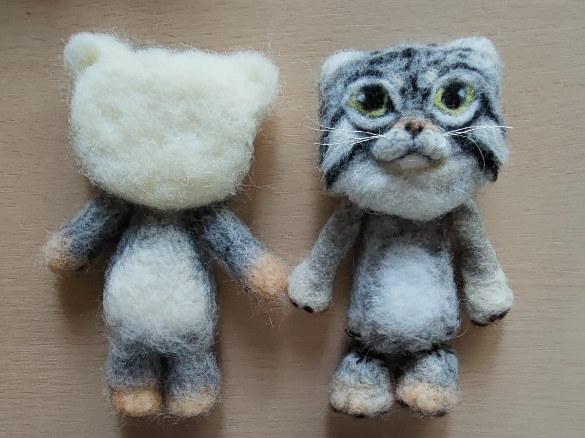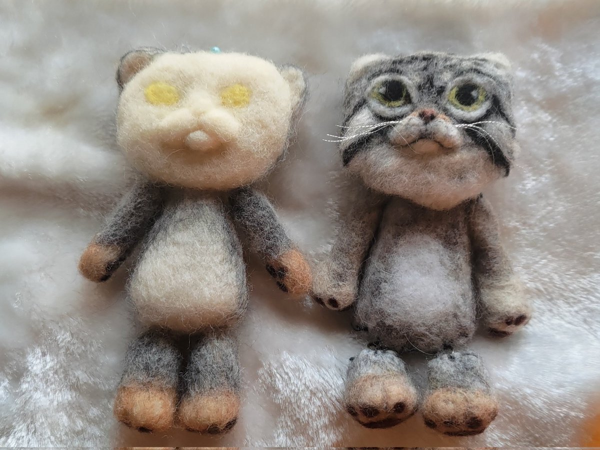 #羊毛フエルト おともマヌルネコ人形      ☆    成長記録 どんな子になるかなぁ 瓜二つは無理でも レフくんの面影を受け継ぐ 子どもたちやお孫さん ひ孫ちゃんの誰かに似た子に出来たら嬉しい /(.. ) #おともマヌルネコ人形 #マヌルネコ #ハンドメイド #押し活 pic.x.com/InbdEIEImg
