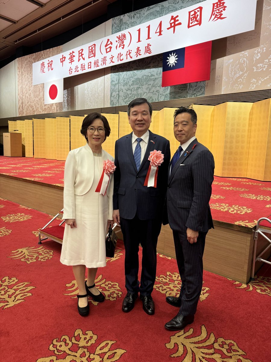 昨日は中華民国(台湾)114周年国慶節、安倍昭恵婦人も参加され、台湾有事は、我が国の有事という認識を再確認。目黒区議会日台議連会長として今年度中の駐日代表処へのご訪問を約束してまいりました。 #台湾 #目黒区 #目黒区議会 #おのせ康裕 pic.x.com/Zv8MXYGoKQ