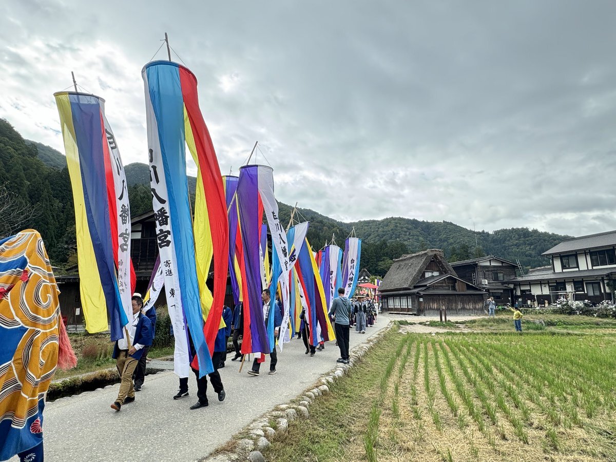 おはようございます。 昨日飛騨高山から帰京しました。 #白川郷 では、八幡神社様の年に一度のどぶろく祭りを開催中。貴重などぶろくを分けていただきました。 合掌作りの合間を、五色の旗が通り過ぎていく美しい風景を堪能。今日からまたがんばります。#目黒区 #目黒区議会 #おのせ康裕 pic.x.com/f1zjANhaDJ