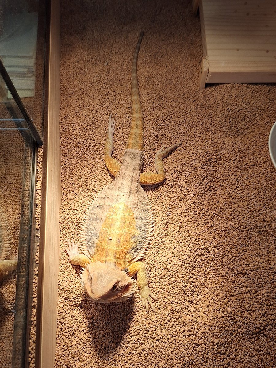 #おは戦71103🌛v2 おはよう御座います! どんな生き物でもそうだと思いますが、完全にリラックスしているときは無防備な体勢をします カエルなら前足をお腹の下にしまったりします フトアゴは飼ってはじめて知りましたが後ろ足も前足も裏返った状態になるんですね(笑) pic.x.com/CWNtSGLS7O