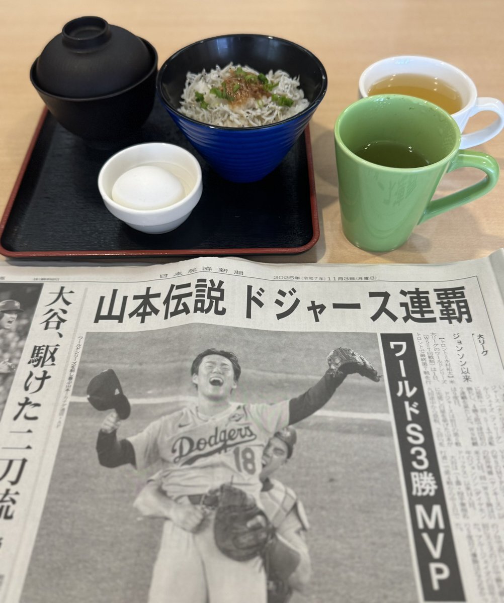 おはようございます 8時間寝て起きたら、誰もいなかった(笑)妻はパート、息子は部活。掃除洗濯皿洗い(私は食べてないのに😆)終えて、ルーティンの朝刊をこちらで。昨日のワールドシリーズ最後まで観ましたが、本当に素晴らしい試合。必死やるって大事だと改めて思いました! #おは戦71103🌛v2 pic.x.com/ZjOhJ4jmWH