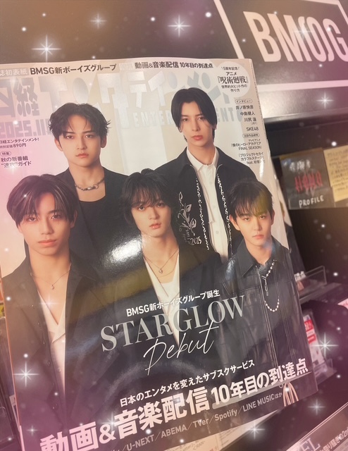 【#STARGLOW】 #BMSG から誕生した新ボーイズグループ「STARGLOW」初表紙⭐️ 「日経エンタテインメント!」11月号 入荷しました🙌 『THE LAST PIECE』(ラスピ)から生まれた 「STARGLOW」🌟 ✨キラキラ輝く5人を全力応援していきましょう✨📣 #RUI #TAIKI #KANON #GOICHI #ADAM
