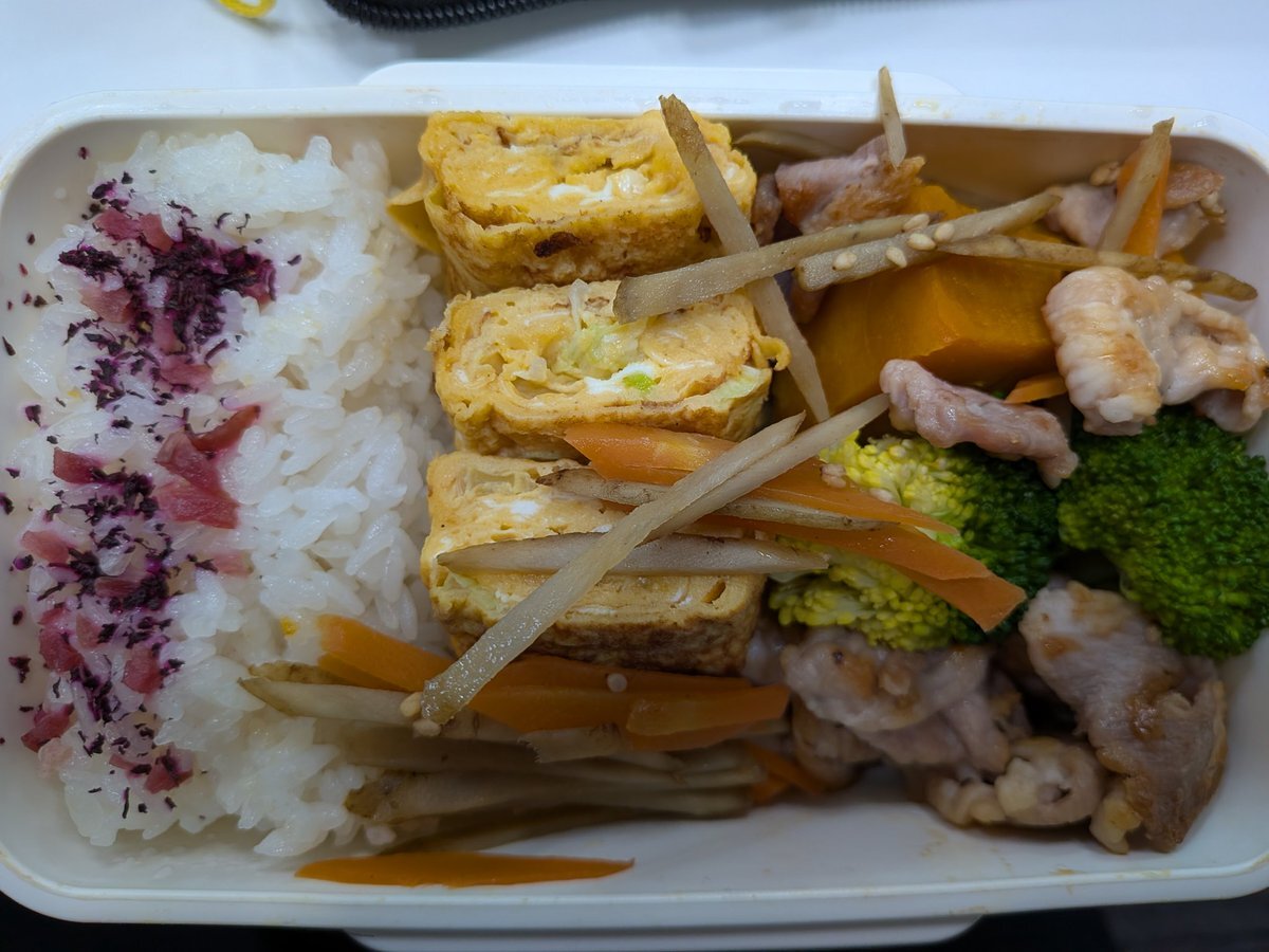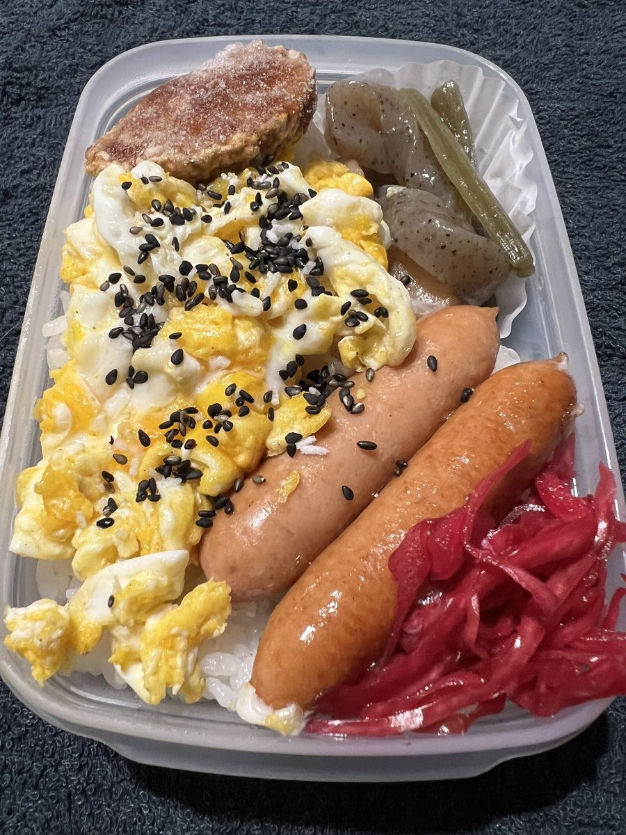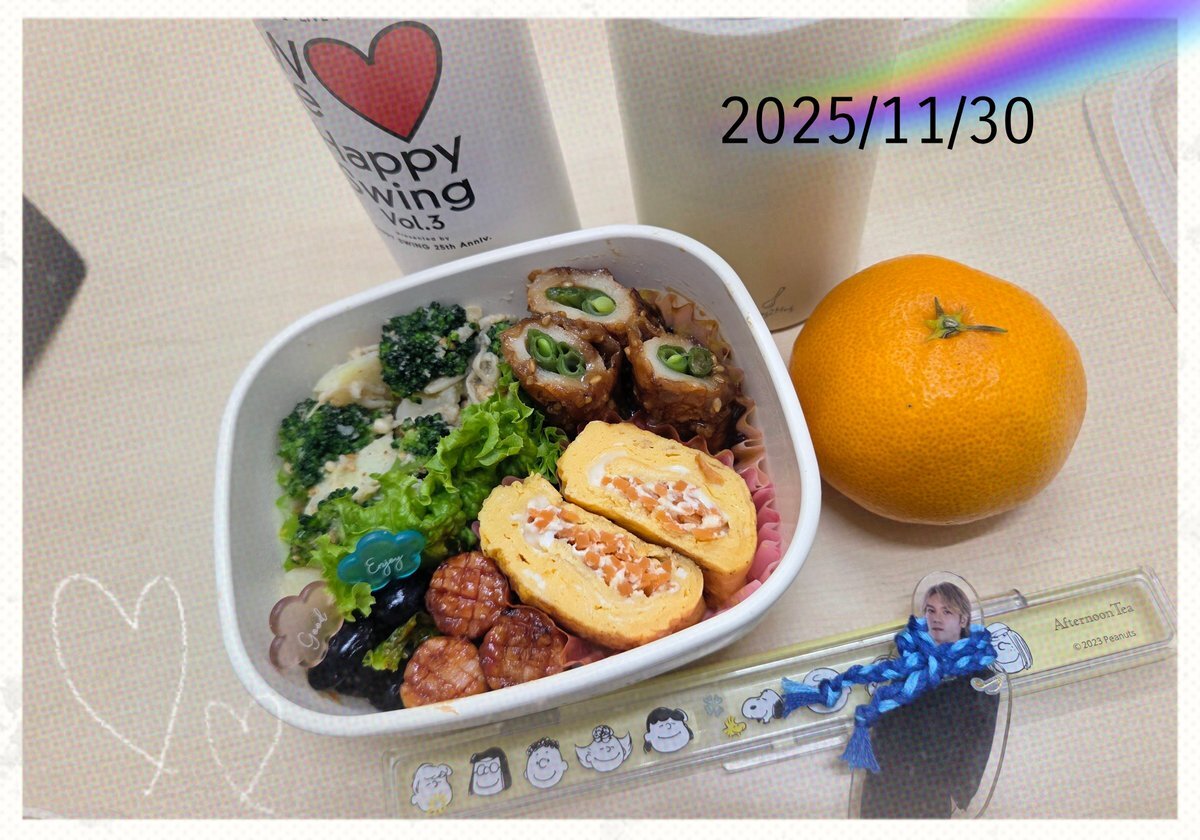 お昼流し込みタイム🍱🌱 🫧11/30のお弁当🫧 ▪じゃがいも&🥦&えのき茸のゴマみそあえ ▫にんじん&チーズ入りたまご焼き ▪ちくわいんげんの照り焼き ▫ケチャップウインナー ▪黒豆さん▫お味噌汁▪🍊 nishi-kenさんのアクスタさんと📸✨♡ 後半もFight🦾💫❃🌈 #お弁当記録 #おひるごはん #ランチ pic.x.com/0eb9BAP4CD