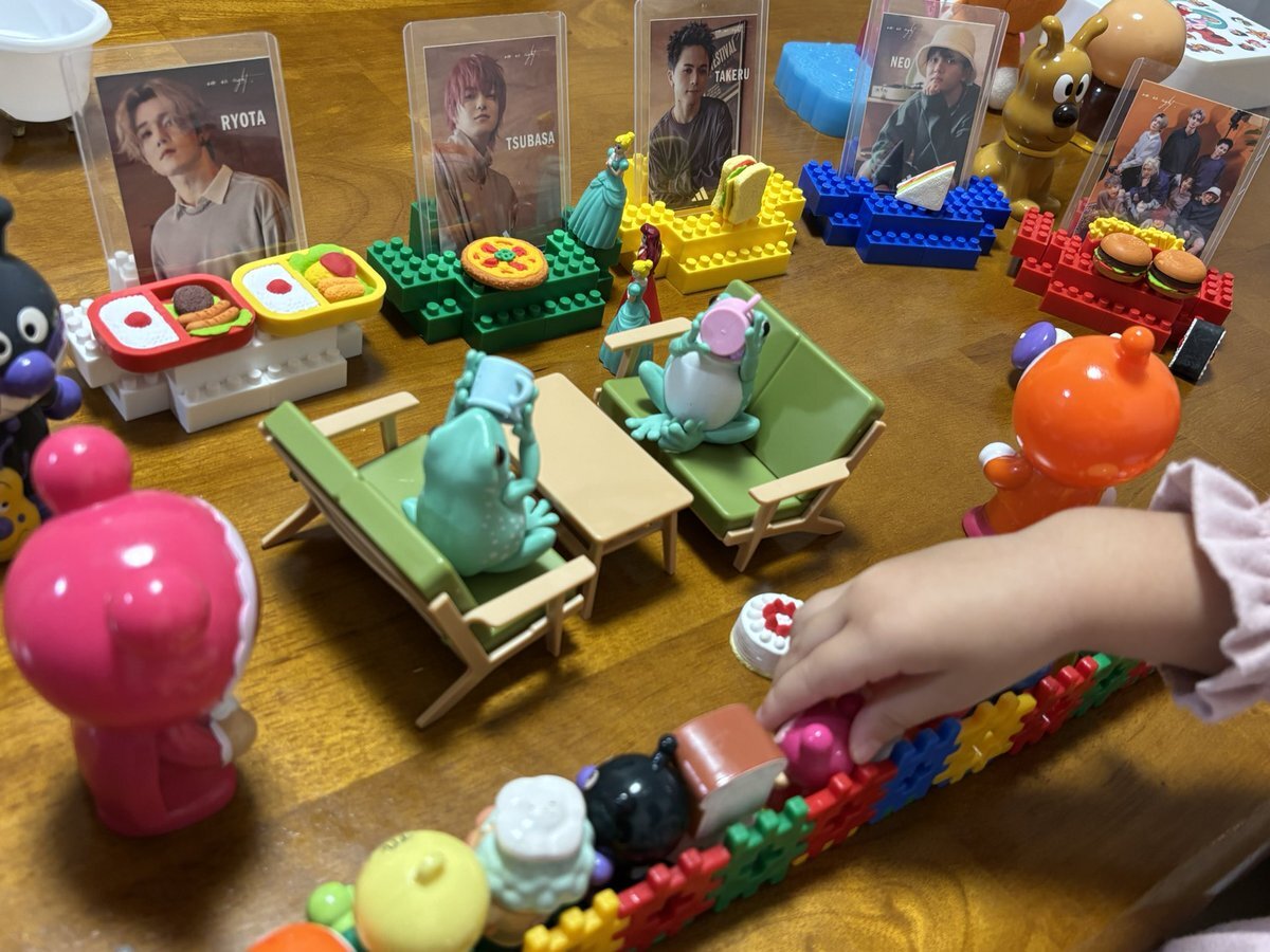 本日はみなさまと幼稚園ごっこ。 「りょうたくんは筋肉だからたくさん食べる👦🏻」お弁当を2つ召し上がりました。 2人はリョウタ様のお歌が「おしりマジですかぁ🍑」に聞こえるそうです。 本当に申し訳ないです。 ツバサ様はプリンセスに囲まれました。 おしまい #ONEOREIGHT #おままごと pic.x.com/7zUjhAr9a3