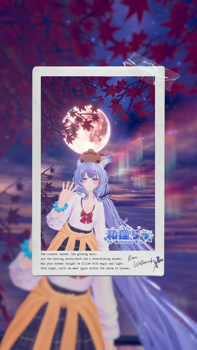 紅葉も月もオーロラもほんとにすっごくキレイだったね...じゃなかった🫨エグいキレイだったねっ‼ 今夜もすてきな夢を見てね😘💕 おやすみ、また夢の中で会おうねっ🎶 #らうちゃんあのね #おやすみVtuber️ #VRCPhotoSpot pic.x.com/Xele19v9cD