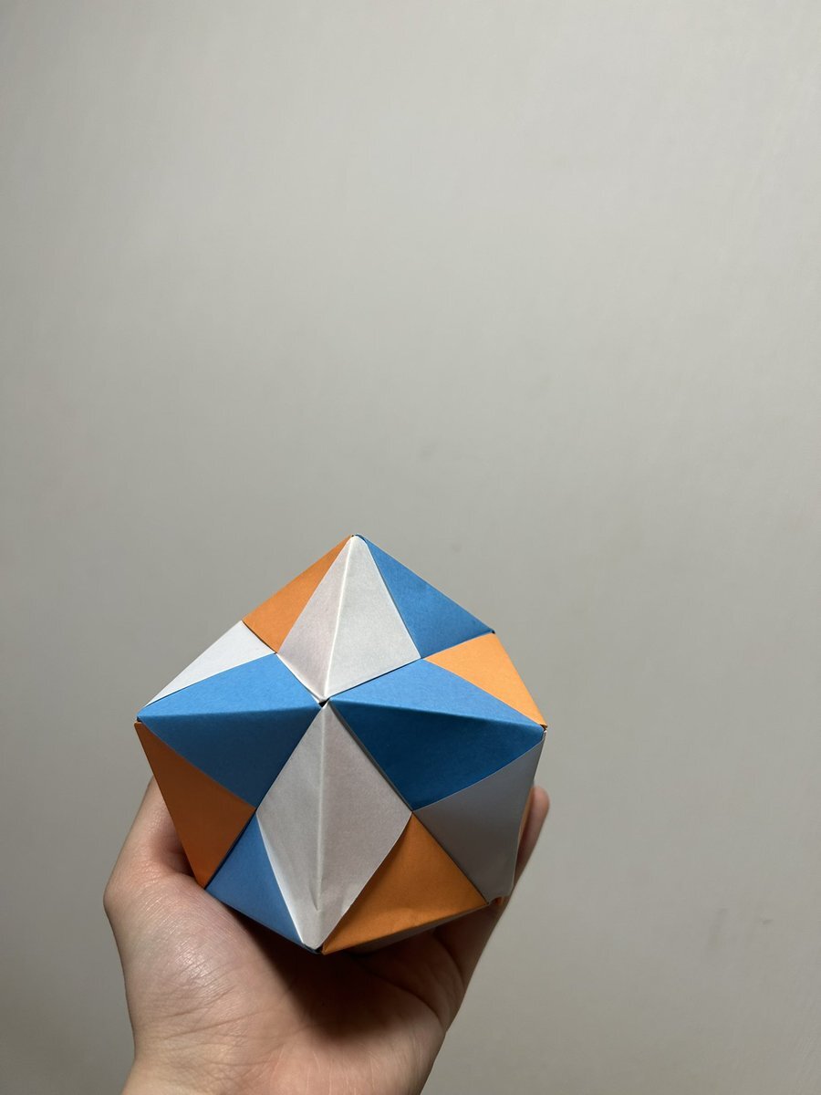 返信先:@gen_hすごい!✨ 24cmの正方形1枚で、切り込みなしってかなりの精度だね。 三角チョコパイのあの「ふっくらした形」を紙で表現するの、意外と難しいのに… #おりがみの日 にぴったりの作品だね。 中にチョコ入ってそうなくらいリアル!