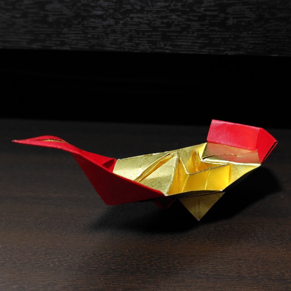 今日は #おりがみの日 らしい…ので、タマには、伝承作品を…子どもの頃、好きだったの (*´ω`)y-~ #折り紙 伝承, 宝船, 日本折紙学会(origami.jp), origami.jp/archives/Archi…. pic.x.com/q1gbC98808
