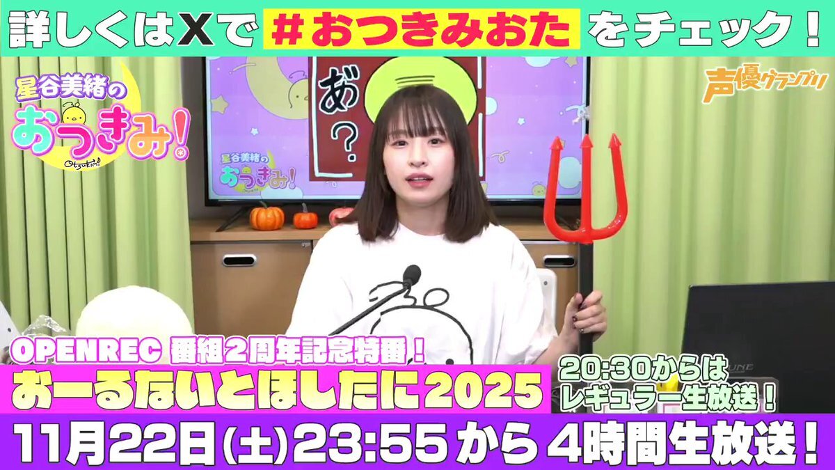 / 🐥第27回『#星谷美緒 のおつきみ!』 \ お待たせしました!11月放送のお知らせです🌟 ■放送日■ 11月22日(土)20:30~ 生放送! openrec.tv/live/pnzgvx3qj… 生放送の後23:55~ PPV特番『#おーるないとほしたに』 openrec.tv/ppv/allnight_h… もあるのでご視聴お願いしますっ✨🪩 #おつきみおた pic.x.com/eaRT7rRTkv
