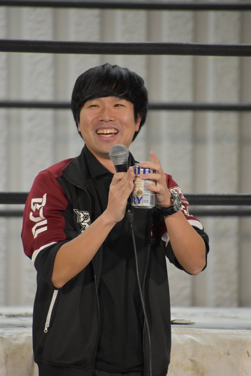 #大日本プロレス @ガトキン大会 前説にて、テンション高めの熊川さん🎤 タイトルマッチ直前のピリッとした空気の中に流れる、熊川さんのアナウンス🎤 どちらも、聞き心地の良いお声なのです😊 ヅカトーク中のお声も素敵なことを私は知っている🤔 #熊川悠司 リングアナ #bjw #bjw北海道ツアー