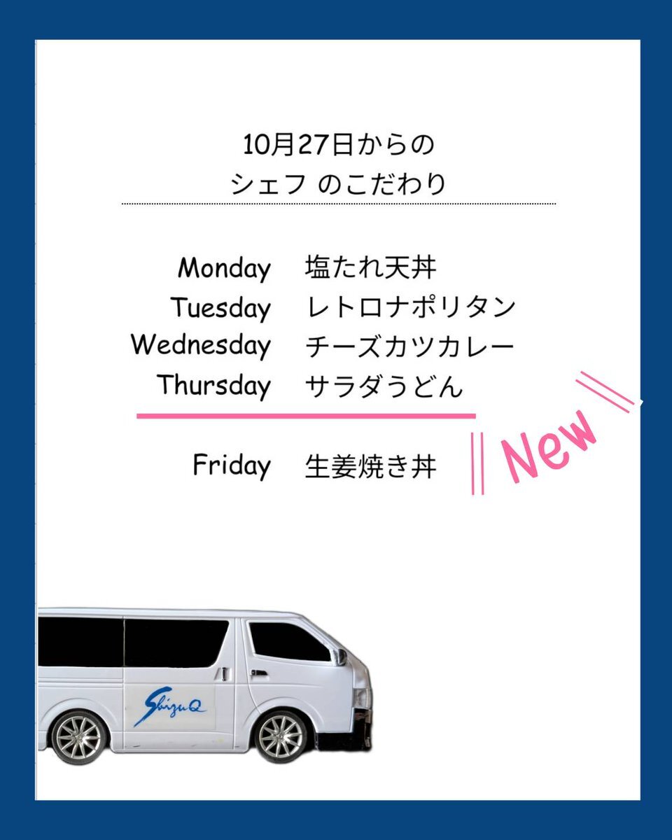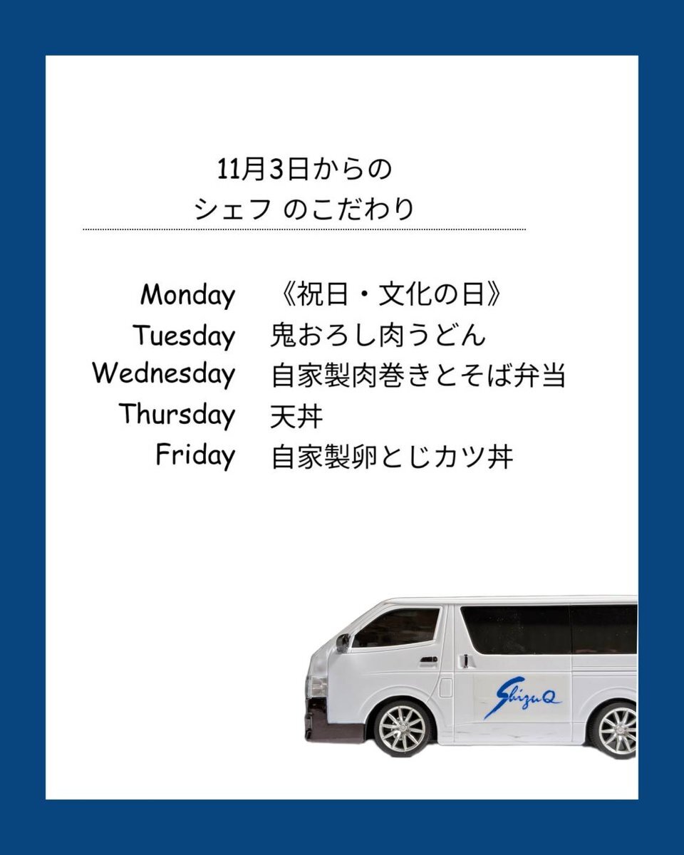 10月27日㈪からのシェフのこだわり 5日間のメニューをわかりやすくまとめました 気になるメニューの詳細は日々の投稿をご覧ください お気軽にお問い合わせお待ちしてます! ◎ご注文 お問い合わせはプロフィール欄をご覧ください #静岡給食協同組合 #シェフのこだわり #お問い合わせはお気軽に pic.x.com/Blk1p9faJp