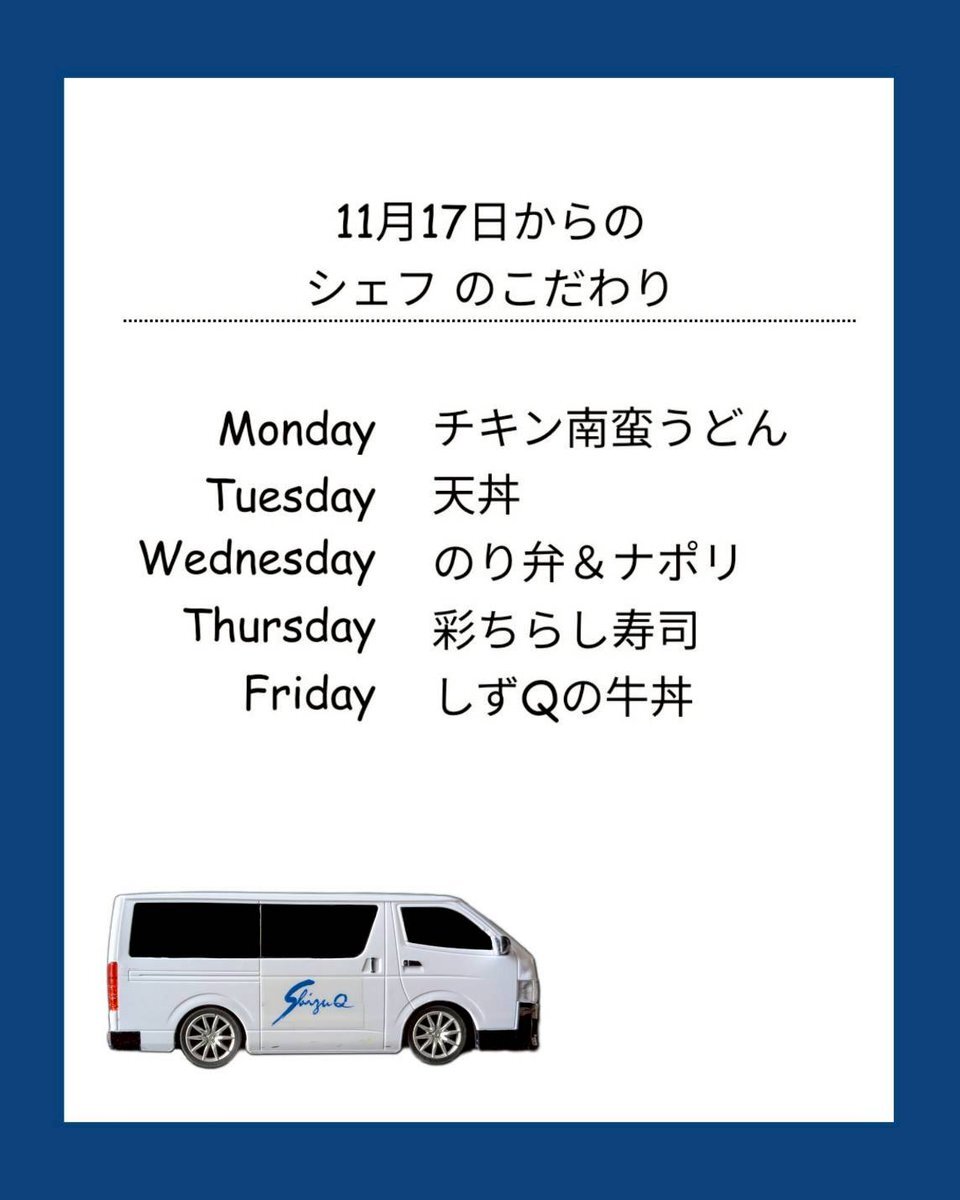 11月17日㈪からのシェフのこだわり 来週月曜日〜金曜日までの5日間のメニューをわかりやすくまとめました 気になるメニューの詳細は日々の投稿をご覧ください お気軽にお問い合わせお待ちしてます! ◎ご注文 お問い合わせはプロフィール欄をご覧ください #静岡給食協同組合 #お問い合わせはお気軽に pic.x.com/Zyq7NdlEsR