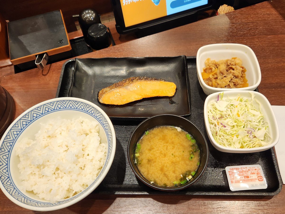 今日の朝御飯。 【𠮷野家】 『焼魚牛小鉢定食』[666円] (ご飯大盛2杯【おかわり無料】、味噌汁、ミニ生野菜サラダ、マヨネーズ、牛小鉢、焼鮭) アプリクーポン使用にて、80円引き✨ 会計586円✨✨ 頂きました。 #𠮷野家 #定食ご飯おかわり無料 #お手頃価格 #アプリクーポン pic.x.com/bk3WxrcDYk