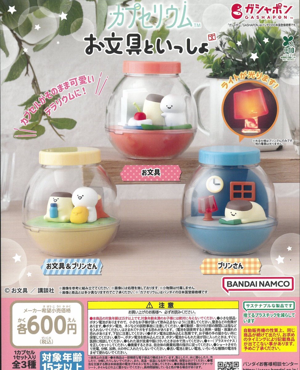 『お文具といっしょ』がガシャポン「カプセリウム」シリーズに登場!カプセルがそのままテラリウムに変身!お部屋のライトが光るプリンさんのテラリウムなど、可愛さに癒やされる全3種がラインナップ! hobby.dengeki.com/news/2802680/ #お文具といっしょ #カプセルトイ