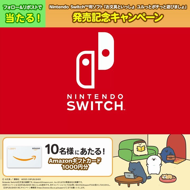 #D3PUBLISHER #NintendoSwitch #お文具といっしょ 発売記念キャンペーン✨ 축하해요 🍀🍀🍀真心こめて応援・参加させて頂きます お願いします~🎉🎉🎉 x.com/D3_PUBLISHER/s…