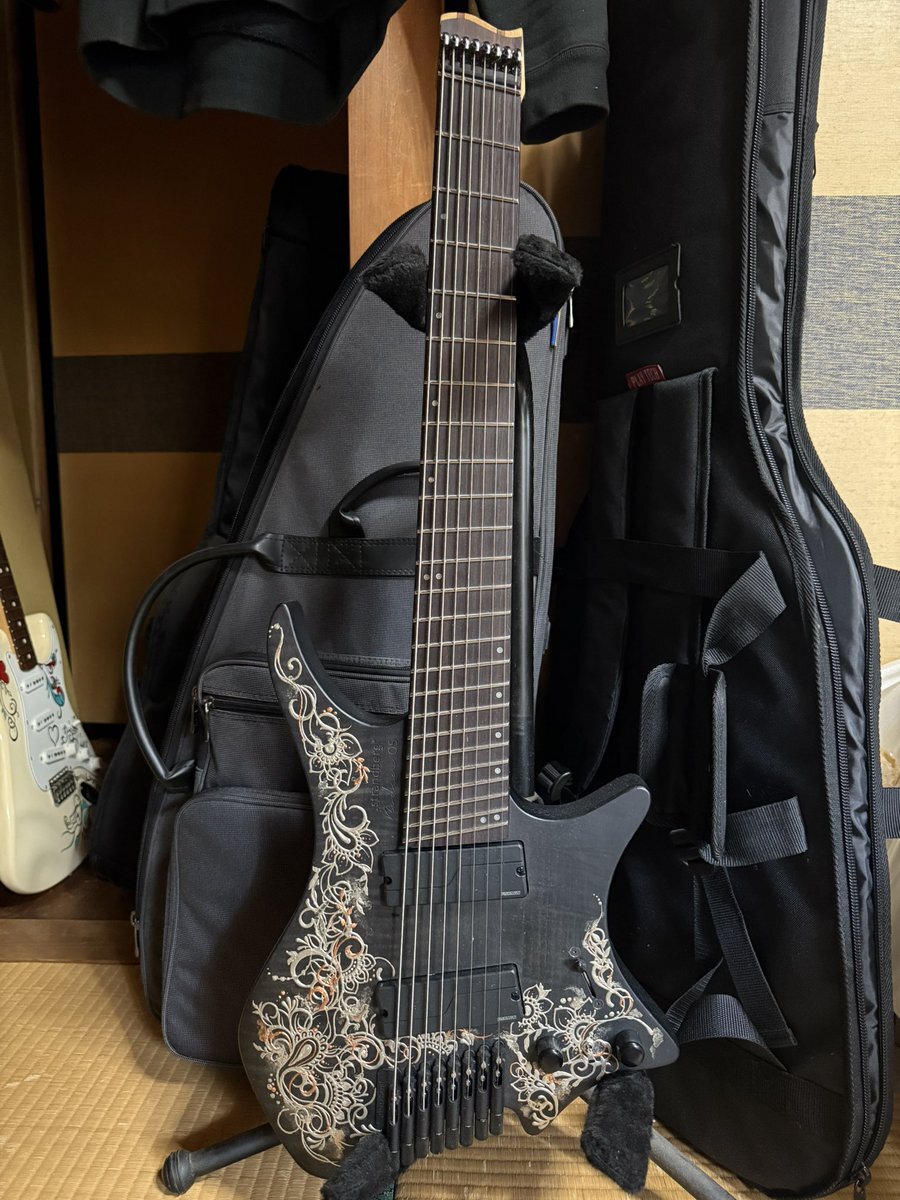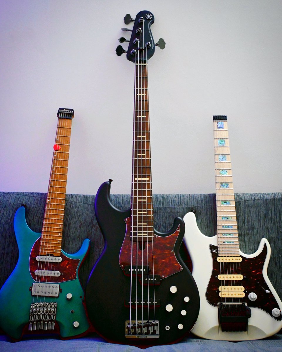 左から、Ibanez Q547, Yamaha B735BA, Kiesel Headless Delos 7 インドに持ち込んでいる3本です✈️ 近年はごく普通にローAを使うので、ギターとベースは7(5)弦で手持ちのラインナップを揃えています🎸 #お気に入りの楽器の写真を晒せ pic.x.com/ntVYqpvOzj