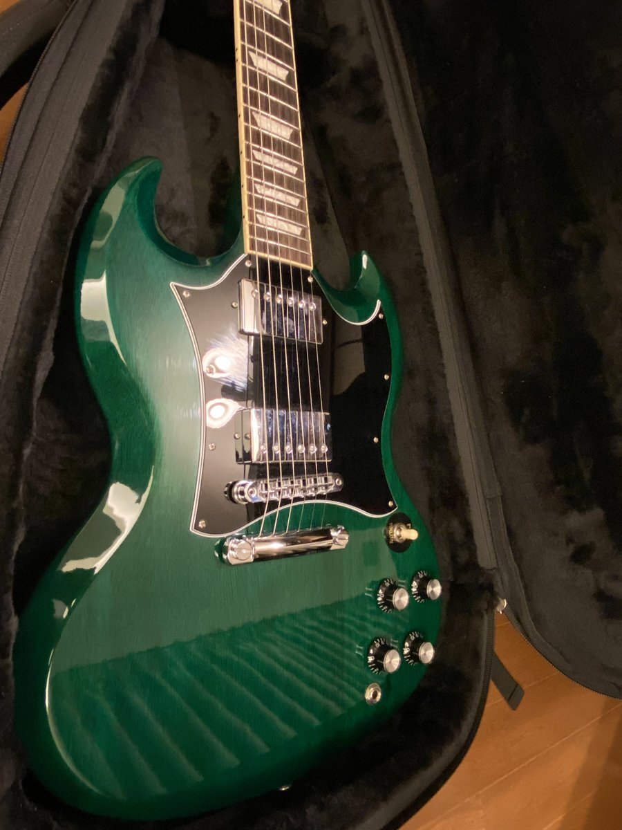 #お気に入りの楽器の写真を晒せ 緑のSGスタンダード 黒のレスポールスタンダード サーフグリン初めてのギター、テレキャスター 初めてのエレキ楽器、Bacchusのジャズベース pic.x.com/alEa5brvWt