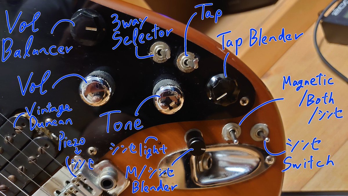 #お気に入りの楽器の写真を晒せ gs.universe 24F化70s fenderボディ、極太ネック、エボニー指板、ステンレスフレット、ダブルアジャスタブルビンテージDuncan SH-1・SH-4、Piezoを応用したシンセドライバー、volバランサー、タップブレンダー等 pic.x.com/zPEhBdCIYp