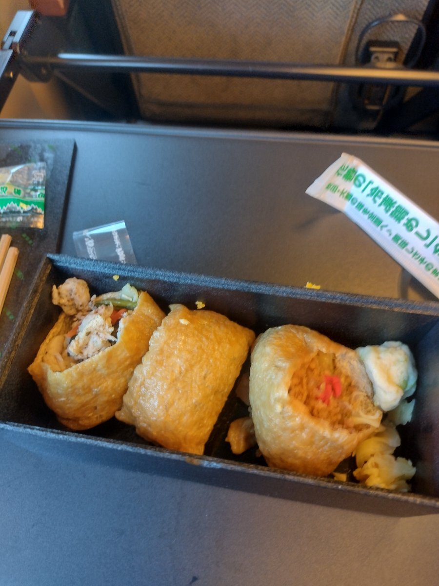 慌ただしく買った駅弁は乱れていた。新幹線のホームをわっせわっせと乱暴に走った私が悪い。駅弁の乱れは心の乱れというわけでもないのだろうが、何故かこのお稲荷さんはうろたえた状態の私の口に入り、それでもやっぱり美味しかった。#ルワンダ #義足 #駅弁 #お稲荷さん #新幹線 pic.x.com/3MJA8CWUOp