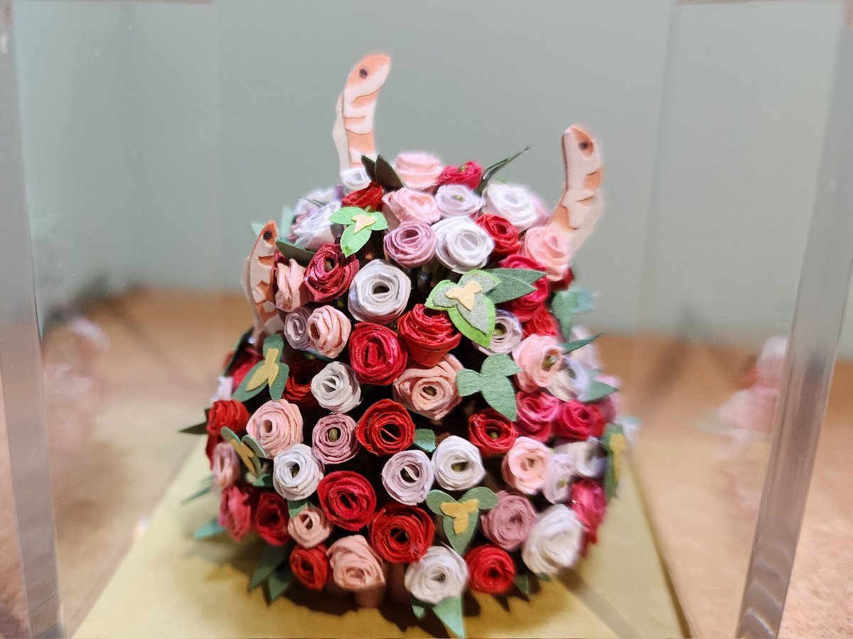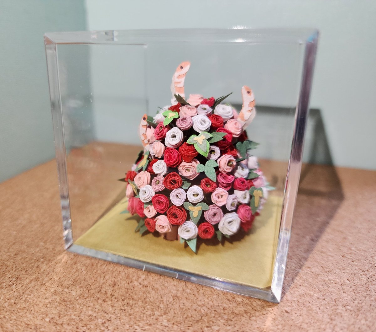 『ニシキアナゴ』×『バラ』 ケーキ風なアレンジメントに住むニシキアナゴ達がひょっこりご挨拶です! 水族館ではチンアナゴと同じ水槽に居る事も多く、間違われる事もありますが別の種なんです! #お花屋さんの水族館 #切り絵 #ニシキアナゴ #バラ #ペーパークラフト #クイリング pic.x.com/epk79My3FG