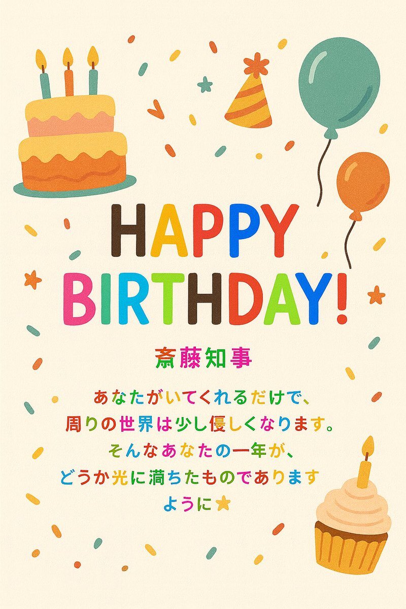 お誕生日おめでとうございます🥂✨ 微力ではありますが これからも応援し続けます😊 #さいとう知事ありがとう #お誕生日おめでとうございます #さいとう知事を応援します pic.x.com/Q4hgX1c6AR x.com/motohikosaitoh…